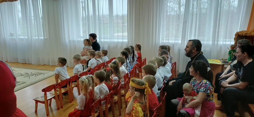 Настоятель храма Георгия Победоносца поздравил воспитанников детского сада «Теремок» с Пасхой