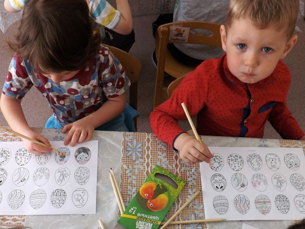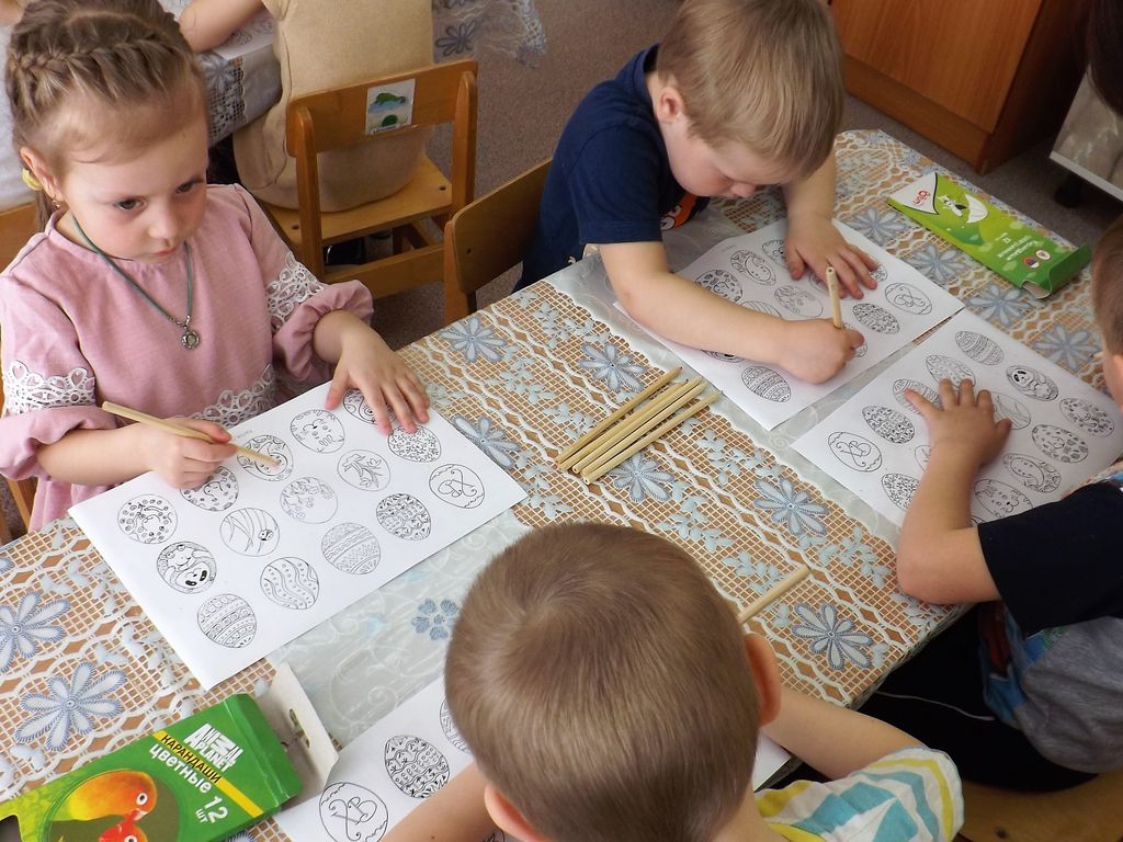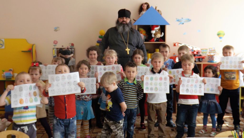 Настоятель Смоленского храма станицы Шумилинской посетил Детский сад, священник провел урок рисования, темой которого была Пасха