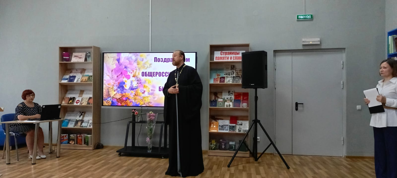 Частые гости центральной библиотеки имени А.М. Горького – протоирей Роман Амплеев, настоятель храма в честь Донской иконы Божией Матери, благочинный приходов Новошахтинского округа и его помощница – Инна Викторовна Саханина, с душевной теплотой, наилучшими пожеланиями и сладкими подарками поздравили коллектив работников библиотек и пожелали процветания, успехов и долгих лет жизни.