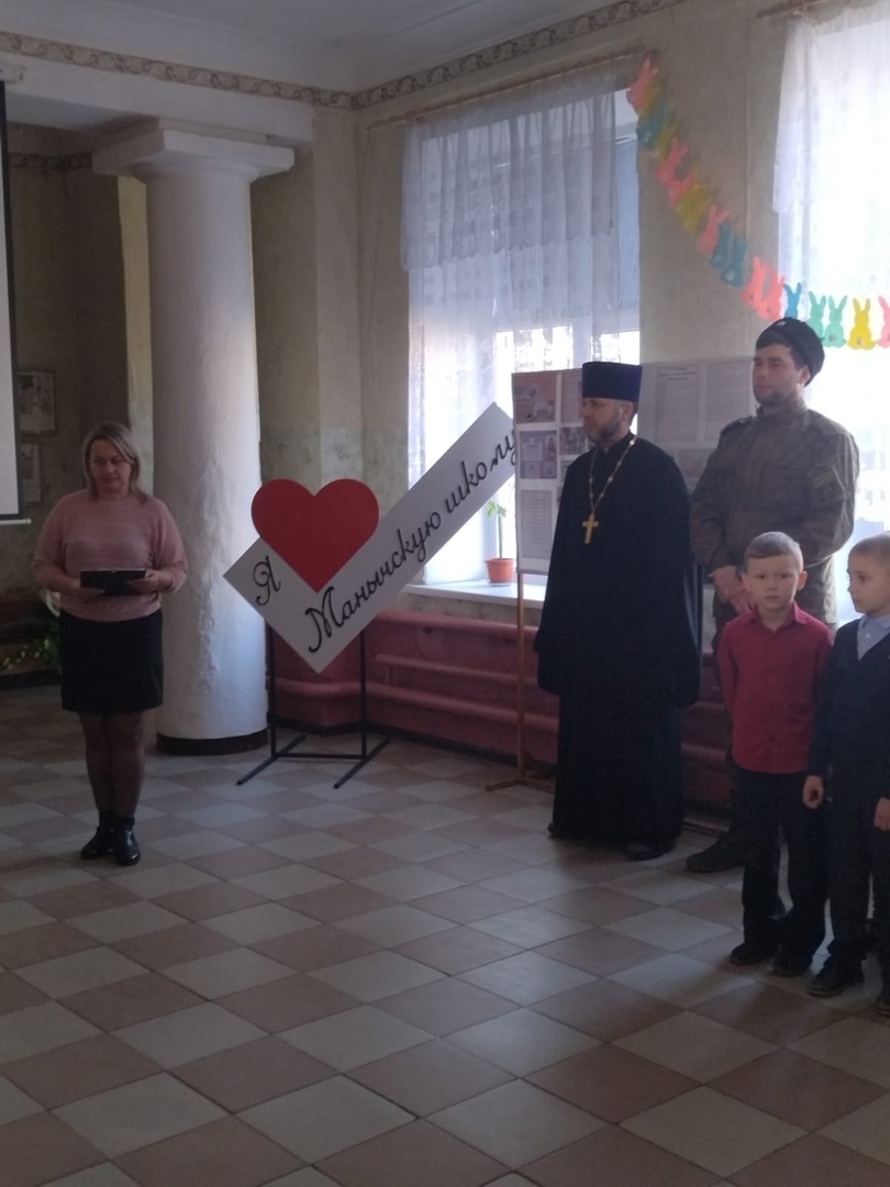 В День памяти жертв геноцида казаков в Манычской казачьей школе Багаевского района прошла линейка, посвященная «Дню памяти жертв геноцида казаков». В мероприятии приняли участие почетные гости – клирик Пятницкого архиерейского подворья протоиерей Роман Мясников и атаман станицы Манычской Пахомов Г.В.