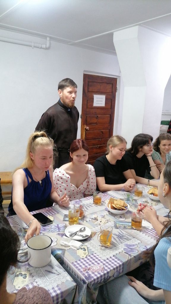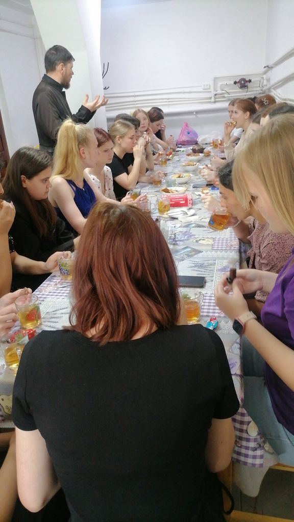 Сегодня, потрудившись на вещевом складе, учащиеся были приглашены на духовную беседу за чаепитием с отцом Алексеем.