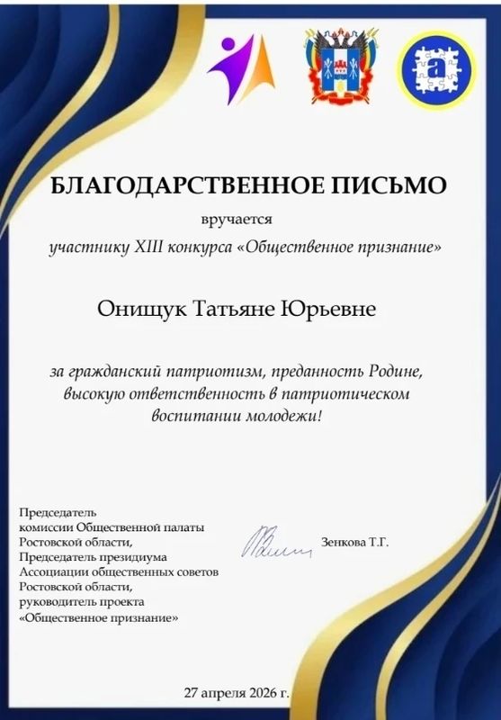 27 апреля в РГЭУ (РИНХ) прошла встреча лауреатов XIII конкурса Общественной палаты Ростовской области — «Общественное признание». Формат живого диалога собрал больше 50 студентов, которые общались с людьми, составляющими нравственный стержень региона: участниками боевых действий и СВО, волонтёрами, общественниками.
