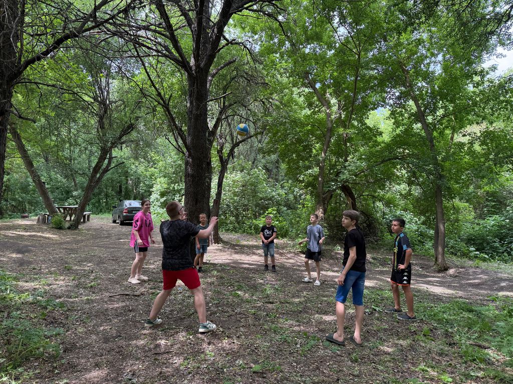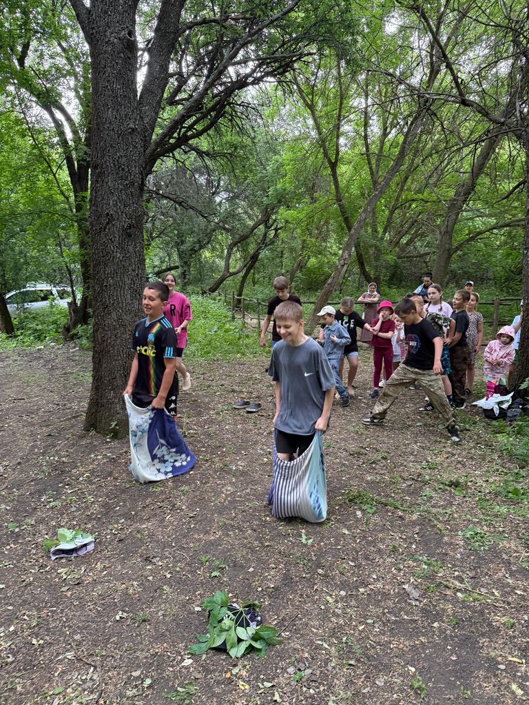 На месте отдыха дети играли волейбол, лапту и другие игры. Также учащиеся школы под руководством Винокурова Михаила спели патриотические песни.