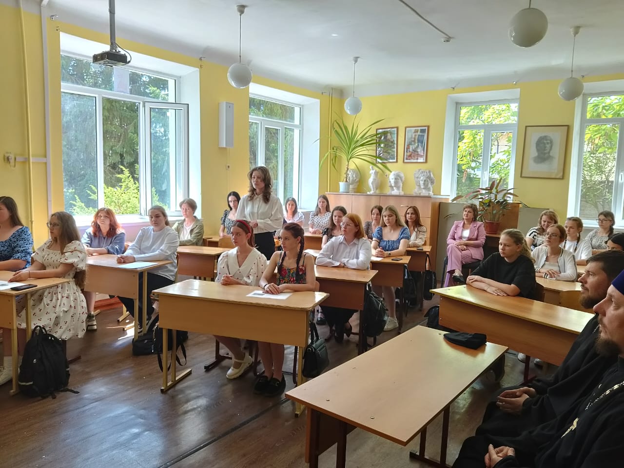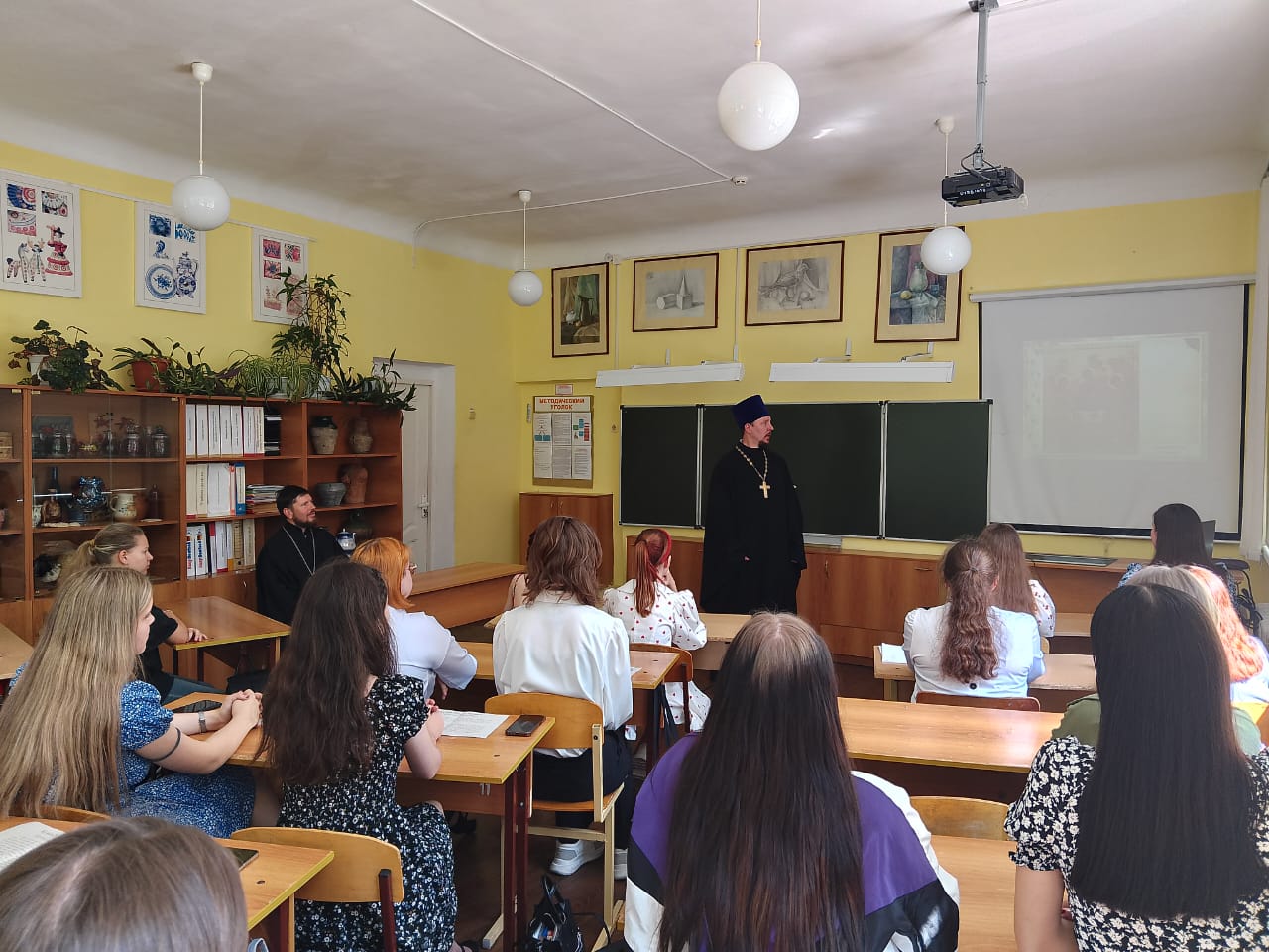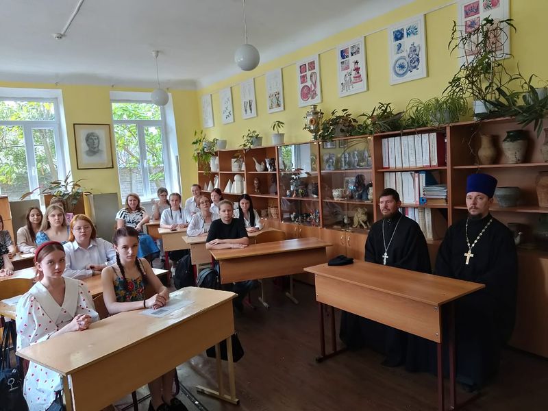 Иерей Роман рассказал присутствующим об иконе Андрея Рублёва «Троица», раскрыв её духовное и художественное значение.