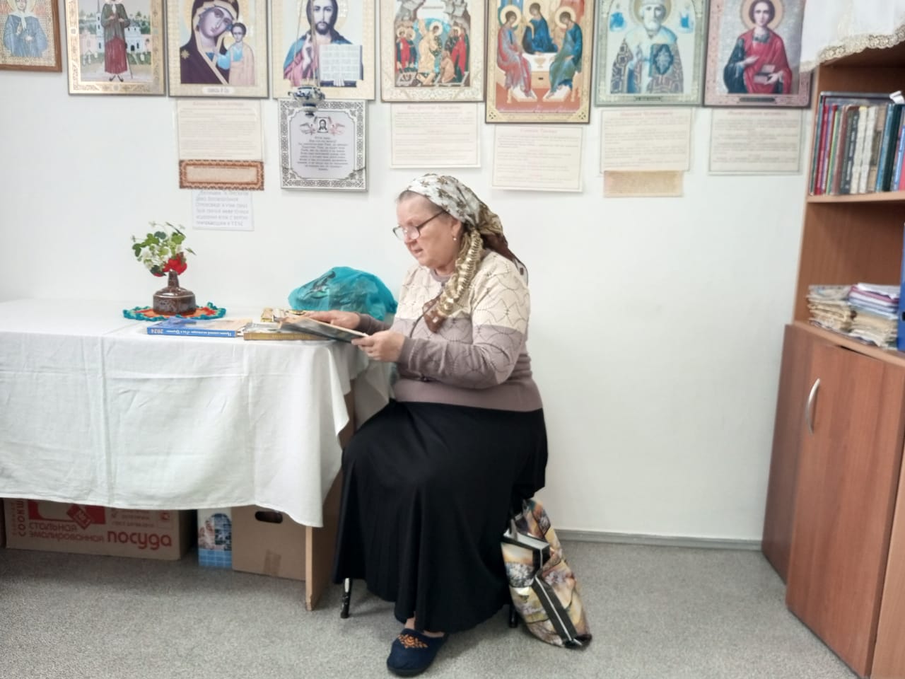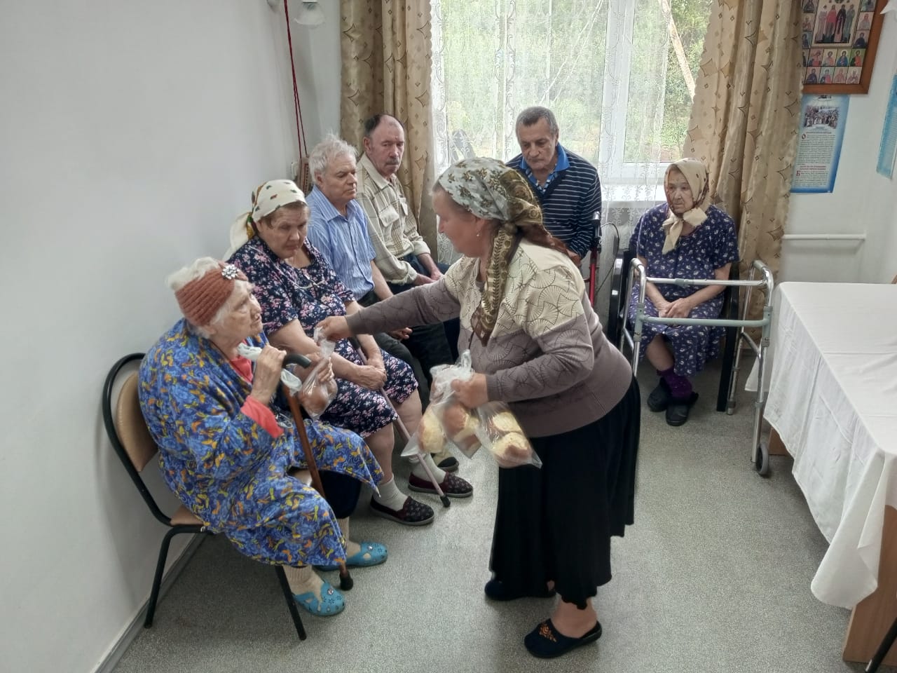 Беседу на тему «Вознесение Господне» провела помощник настоятеля по образованию Шевчук Н. В., которая рассказала о содержании праздника по тексту Евангелия и его толкование архиепископа Аверкия Таушева, а также о духовном смысле для православного человека. После занятия постояльцам раздали сладкие булочки.