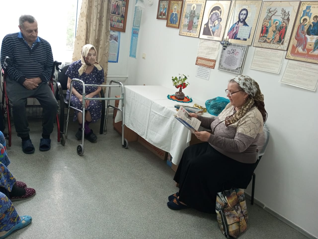 В доме престарелых п. Садовый Багаевского района, по благословению настоятеля прихода святой блаженной Ксении Петербургской протоиерея Романа Мясникова, прошло очередное занятие по Закону Божьему.