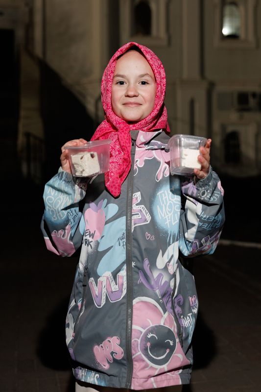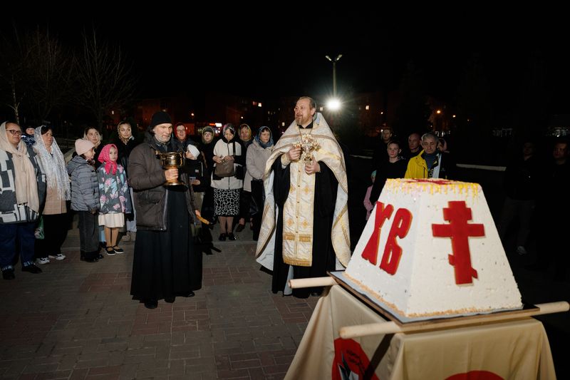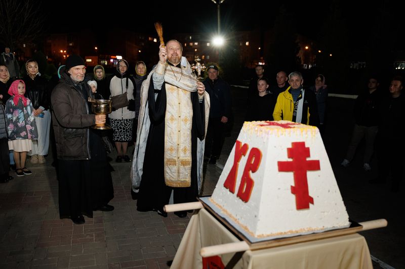 Творожная великая пасха была освящена протоиереем Романом Амплеевым, настоятелем Донского храма, руководителем отдела по взаимодействию с казачеством Шахтинской епархии, и преподнесена в дар каждому пришедшему на ночное богослужение празднования Пасхи Господней. Все желающие смогли отведать вкусного творожного нежнейшего угощения, было роздано более 500 кусочков этого чуда.