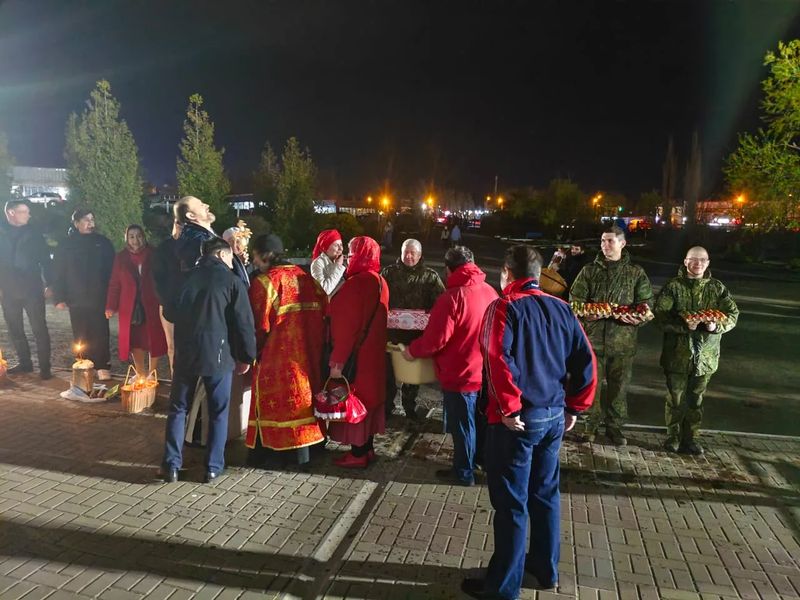 На ночном богослужении праздничной Литургии в Донском храме причастилось 170 прихожан, радость светлого Христова Воскресения разделили казаки, воины из близлежащих воинских частей, которые прибыли освятить яйца и куличи.
