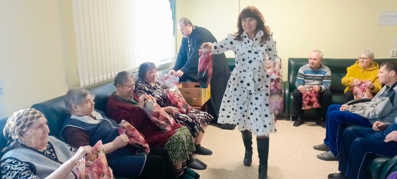 По окончании беседы всех поздравила Инна Викторовна, после чего подарили подарки. В ходе встречи задавались вопросы, волнующие пожилых людей, на которые с радостью ответил священник.