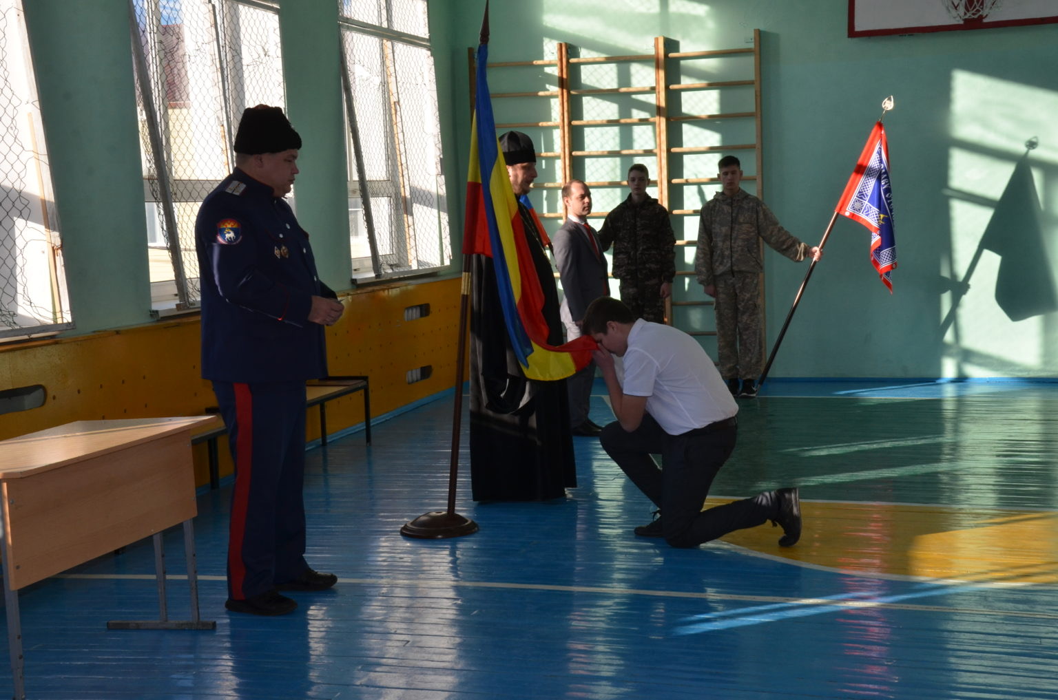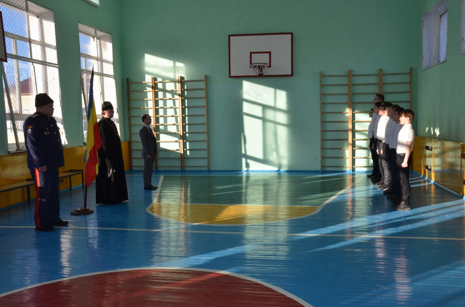 С приветственным и напутственным словом к ученикам обратились атаман Боковского юрта М. В. Гончаров и иерей Александр, после чего в присутствии почетных гостей учащиеся 9-х классов приняли присягу на верность Отечеству.