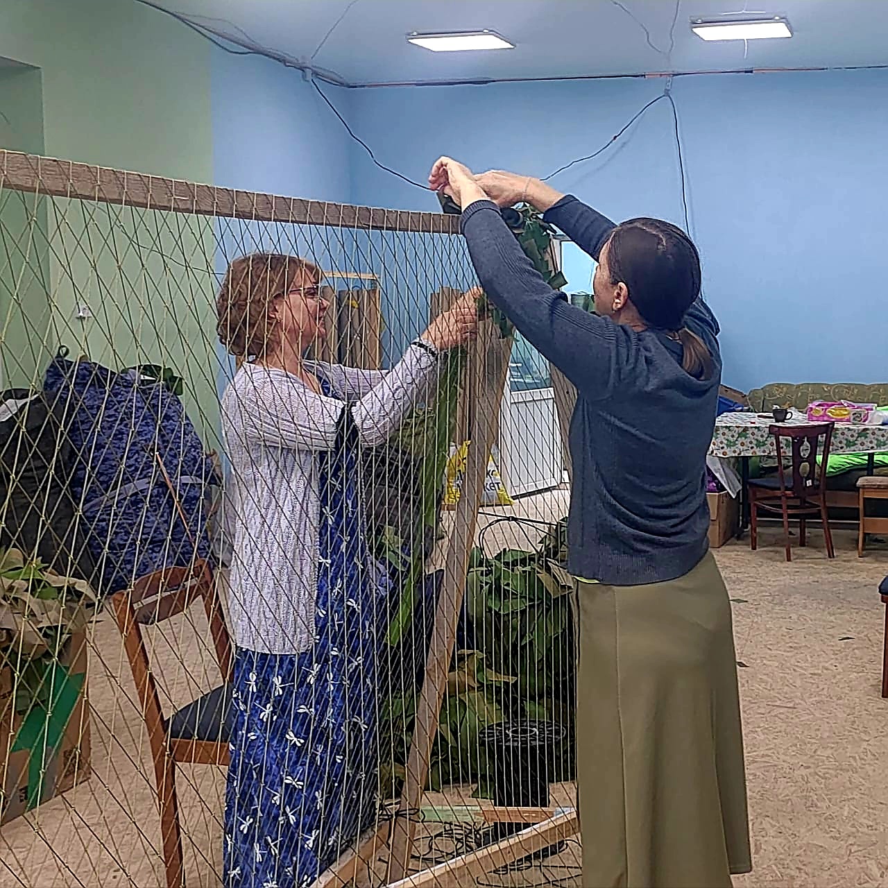 В конце урока протоиерей Сергий поблагодарил заведующую ДК Татьяну Юрьевну Лапскову, прихожанку Пантелеимоновского храма, за гостеприимство и теплый прием. После занятий, присутствовавшие поучаствовали в плетении масксетей для нужд СВО.