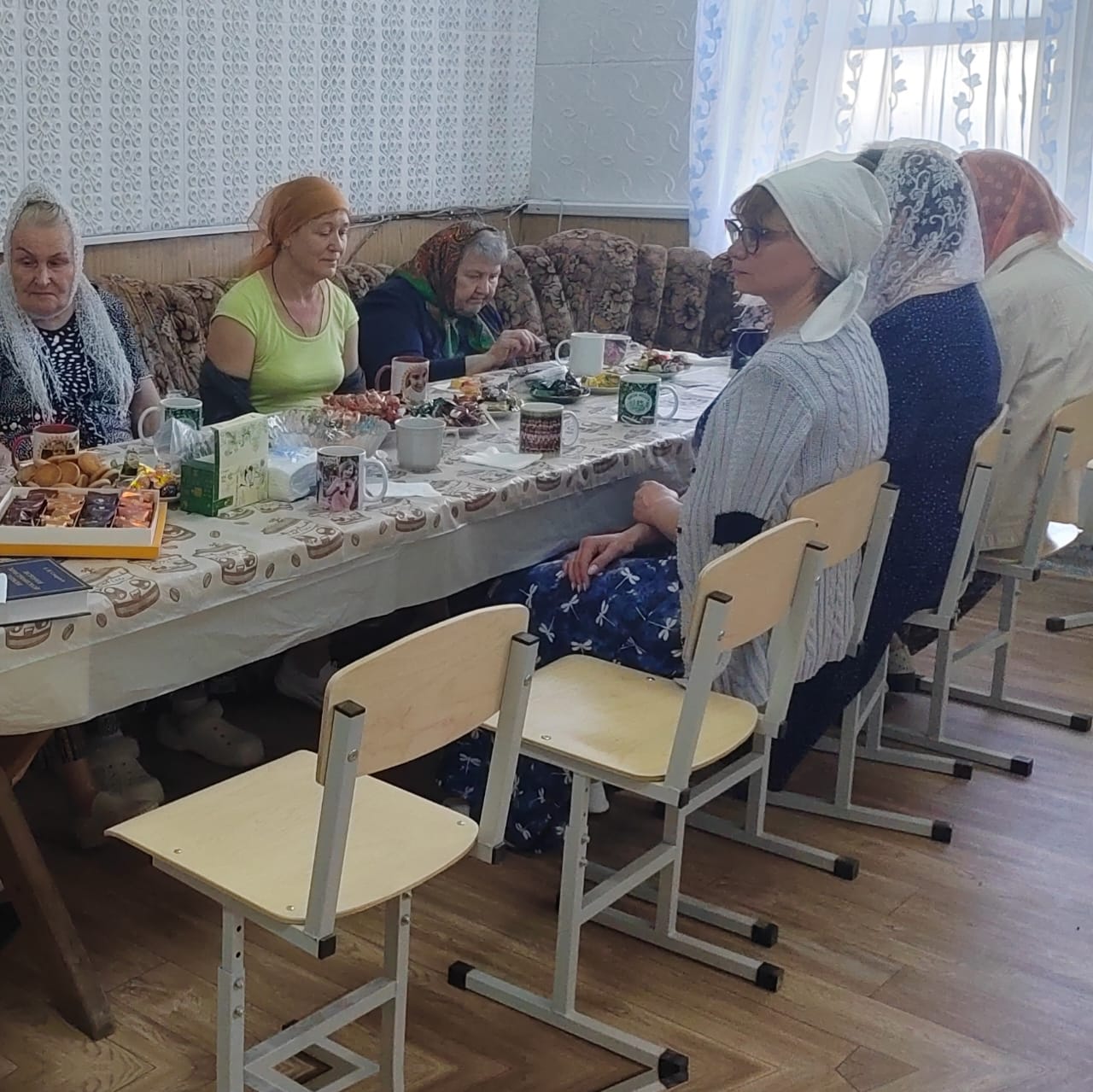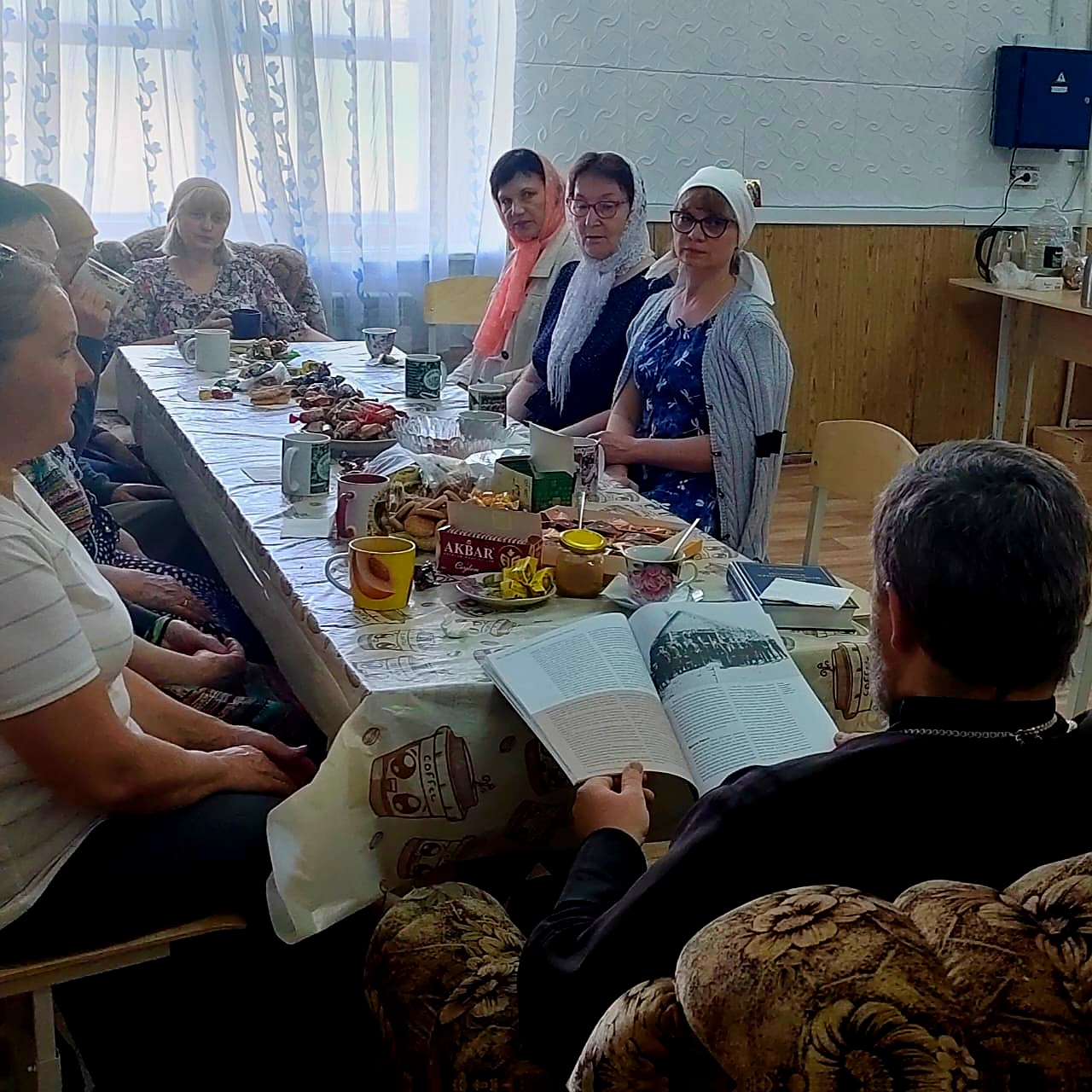Перед началом занятий состоялось традиционное чаепитие и неформальная беседа. В уроке принимали активное участие жители пос. Майского и прихожане Пателеимоновского храма.