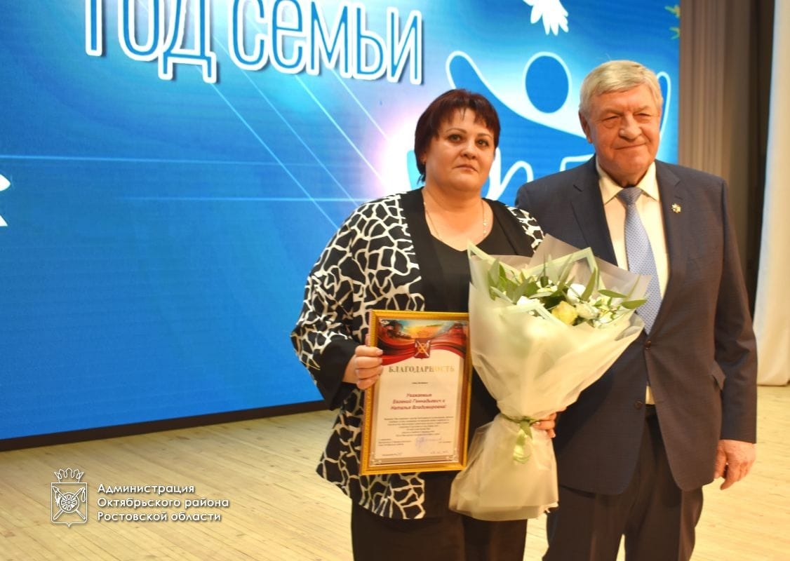Было принято решение на торжественном мероприятии наградить семьи Октябрьского района: Благодарностями Собрания депутатов Октябрьского района и главы Администрации Октябрьского района, семьи, являющиеся примером для своих детей, внуков и жителей Октябрьского района, за многолетний добросовестный труд на благо Октябрьского района, активную жизненную позицию, долгие годы в браке, за оказание волонтерской помощи муниципальному штабу Всероссийской акции #МыВместе, муниципальному центру добровольчества «Пульс района», а также за активное участие в сборе и отправке гуманитарной помощи военнослужащим, а также в связи с открытием Года семьи.