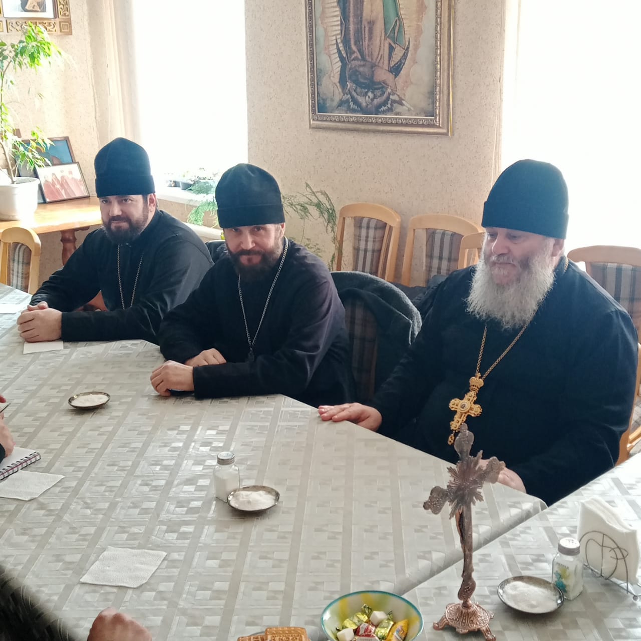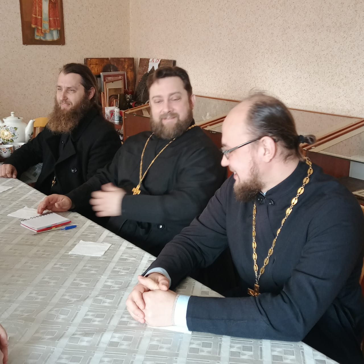 На собрании присутствовали все семь священников, несущих свое служение в районе, из них двое монашествующих. Трое трудятся во славу Божию непосредственно в городе, остальные в окрестных населенных пунктах. Возглавил общение исполняющий обязанности благочинного иеромонах Димитрий (Яроцкий). На повестке дня были указы и распоряжения священноначалия, планы участия в различных мероприятиях. Все присутствующие отцы выразили свое желание всячески активизировать свои усилия с упованием на помощь Божию усердно трудиться во благо святой Церкви Христовой. В завершение встречи отец Димитрий поблагодарил всех за усердные труды и пожелал усердия и успехов в пастырском служении.