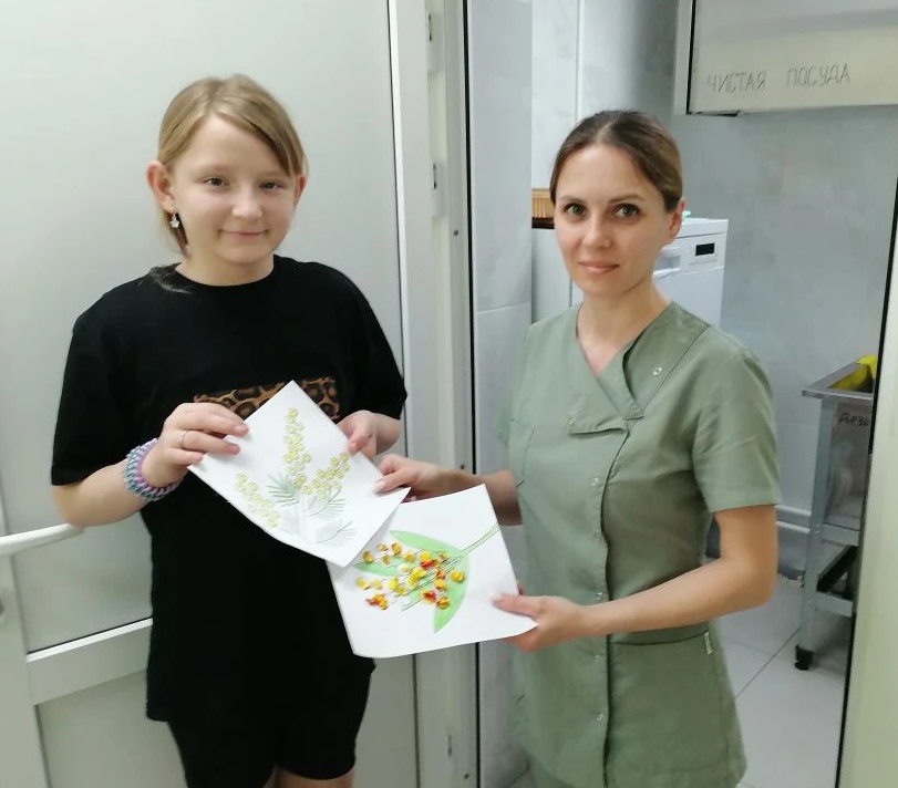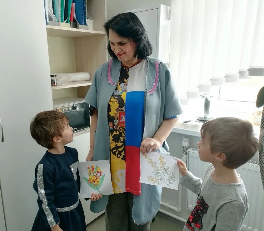После завершения урока дети поспешили поздравить сотрудников приюта «Огонек» с праздником и вручить им открытки, сделанные с теплотой и любовью.