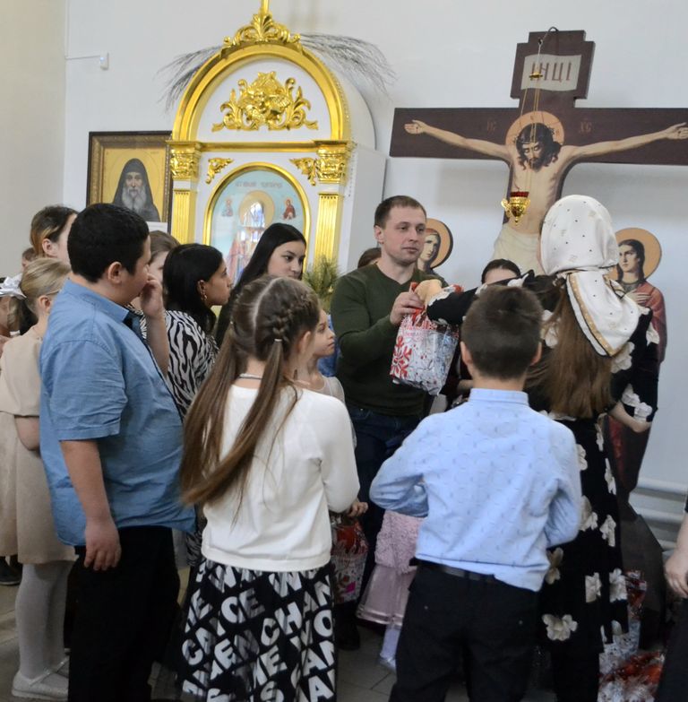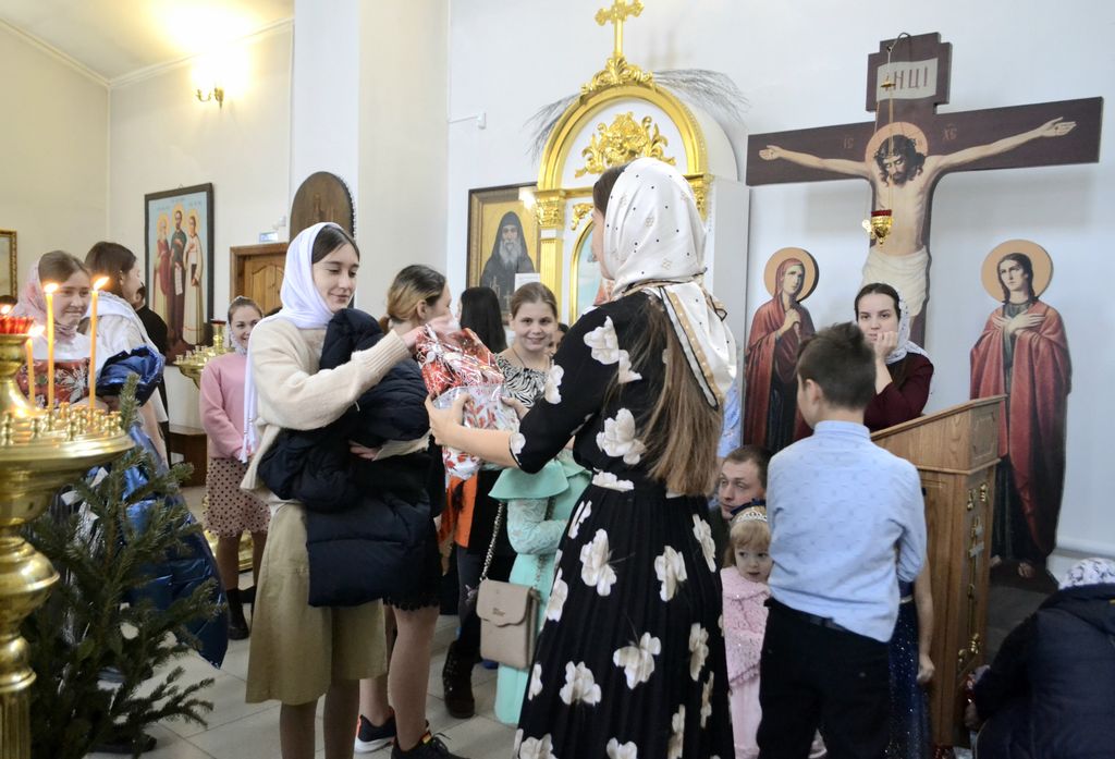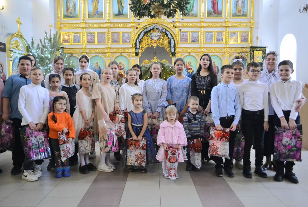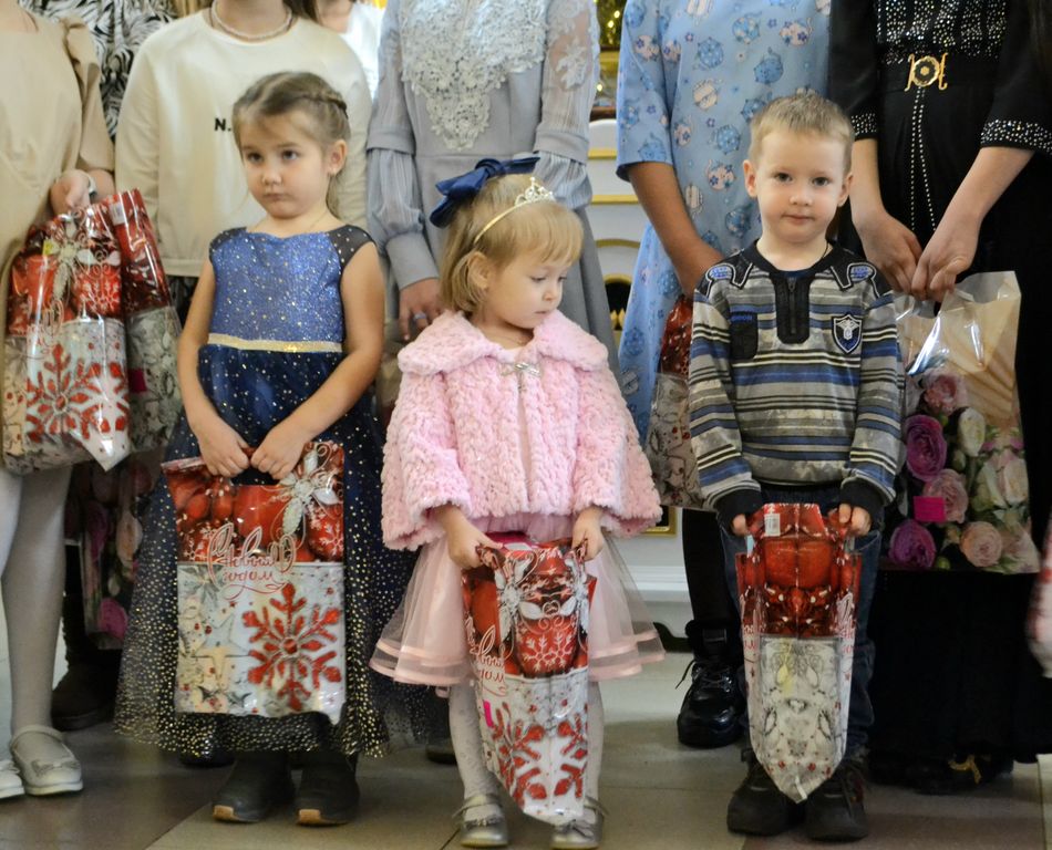 Настоятель храма иерей Евгений Осяк поблагодарил ребят и пожелал успехов в учебе. Ну и как всегда, не обошлось без подарков, которые раздали детям после выступления.