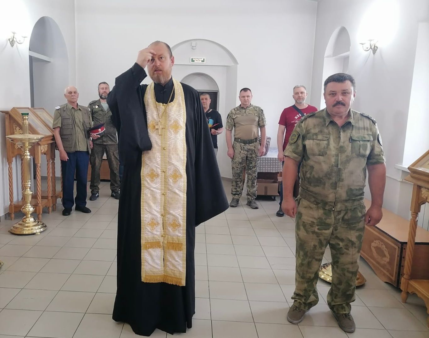 После совместной молитвы состоялась беседа с казаками о празднике Вознесения Господня и его духовной основе.