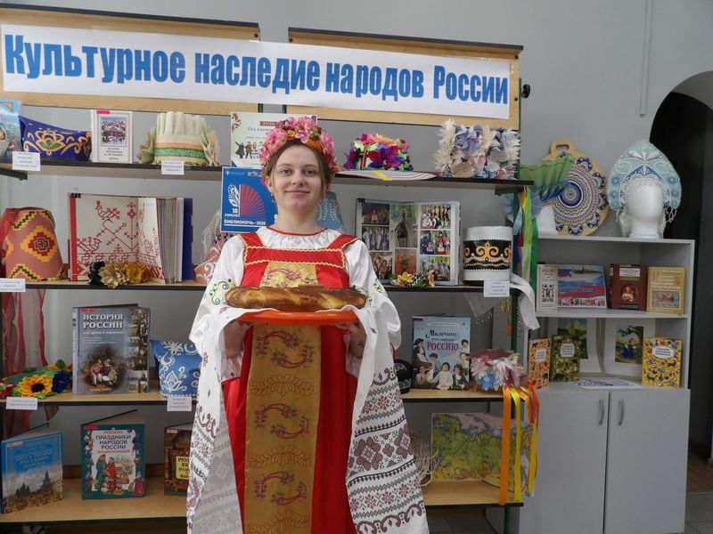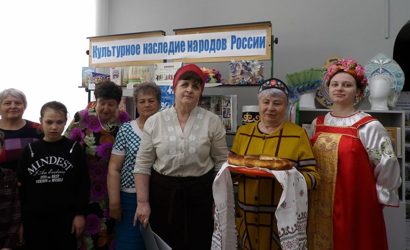 «Библионочь – 2026» стартовала в библиотеке с открытия традиционной выставки «Культурное наследие народов России». Главный библиотекарь, Бабанина Т. И. радушно пригласила всех гостей присоединиться к акции, а в знак гостеприимства участникам мероприятия вручили каравай – символ тепла и хлебосольности.