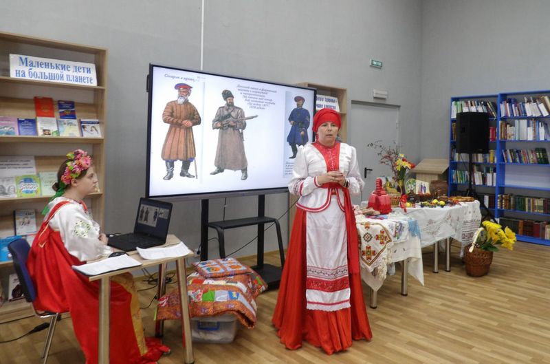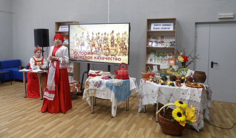 В рамках акции «Библионочь» для гостей была проведена лекция «Казачество как часть многонационального единства России». В своем выступлении Инна Викторовна Саханина подробно рассказала о жизни донских казаков и их многовековых, православных традициях, поделилась интересными деталями о семейной жизни в казачьей среде, осветила вопросы воспитания молодых казачат и подробно остановилась на традициях воспитания девушек из казачьих семей.