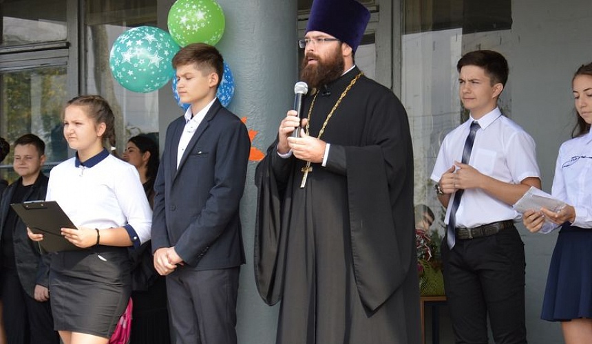 Благочинный Каменск-Шахтинский округа иерей Александр Теличкин принял участие в торжественной линейке в школе № 10