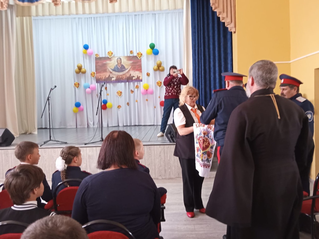 Протоиерей Сергий Сергошин посетил ДК пос. Интернациональны. В праздник Покрова Пресвятой Богородицы в учреждении культуры состоялся торжественный акт, посвященный великому празднику и традиционному посвящению учеников школы 19 в казачью дружину школы.