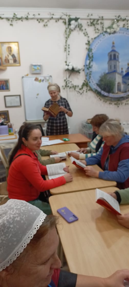 Каждое воскресенье, после Божественной литургии, в рамках Патриаршей программы по изучению Священного писания, участники группы собираются в левом пределе Донского храма, где миссионер Андрей Викторович Балковой, алтарники и прихожане Донского храма разбирают новые главы Евангелия и беседуют на духовные темы. А по четвергам помощник о. Романа Саханина И.В. проводит беседы для сестер-милосердия и серебряных добровольцев, которые трудятся в клубе «Мироносицы» и гуманитарном центре «От сердца к сердцу». В ходе занятий рассматривались аспекты православной веры, изучались Библия и святое Евангелие, уделяли внимание особенностям Исповеди и Причастия.