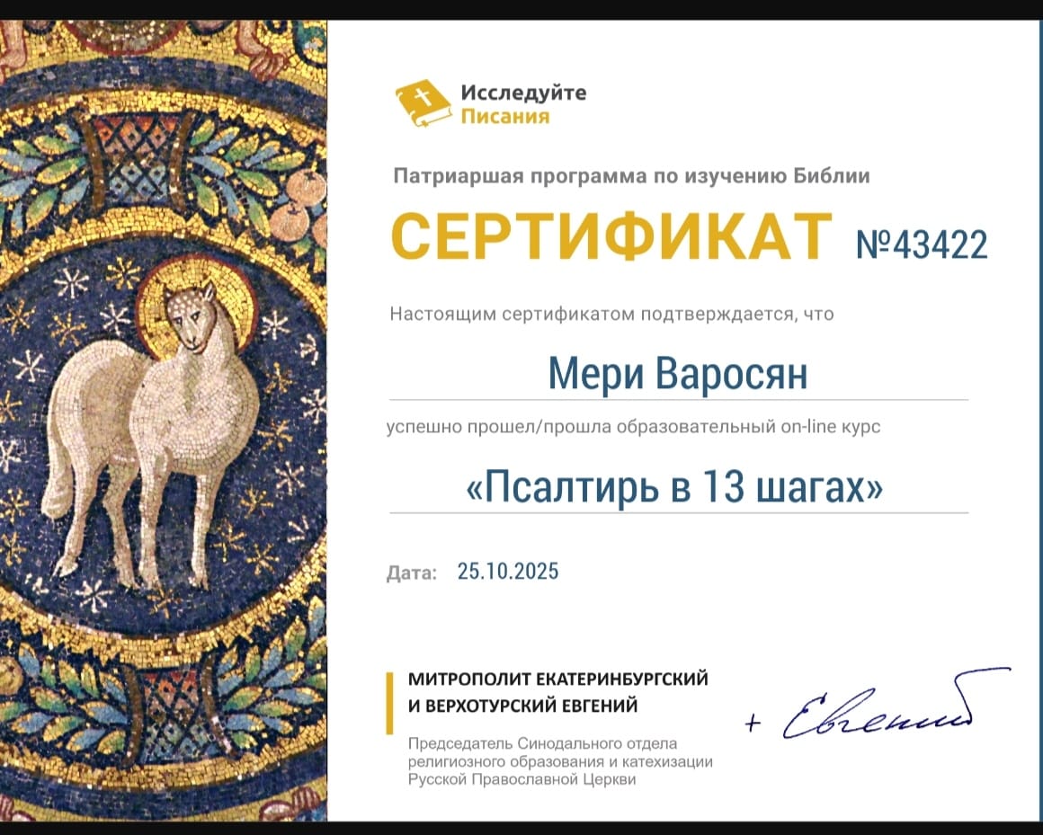 Также продолжается обучение на платформе «Исследуем Писание». Психолог центра Мери Варсоян получила сертификат об успешном прохождении курса.
