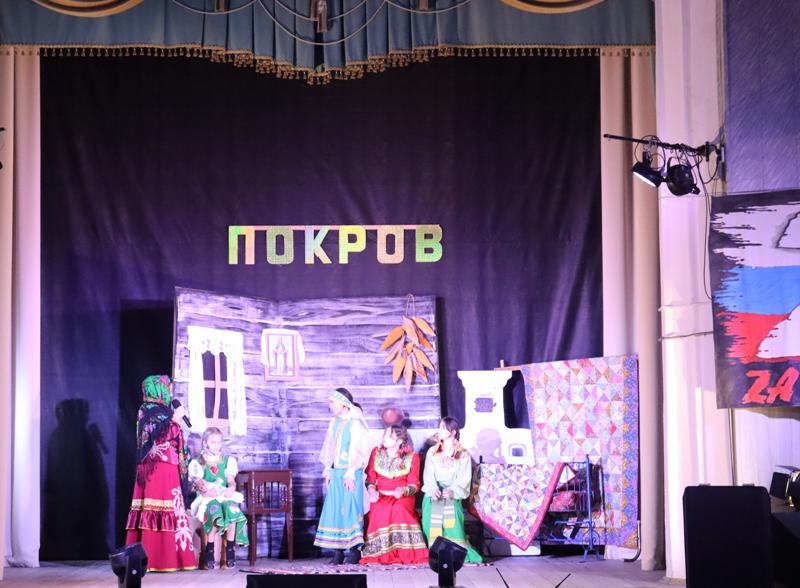 Накануне Покрова 13 октября творческий коллектив ДК «Антрацит» провел фольклорный праздник «Пусть душу озарит святой Покров». В старину говорили, что с Покрова дня до обеда – осень, после обеда – зима, а еще Покров – начало посиделкам – собрали урожай, можно и гостей принимать, да самим в гости сходить. Поэтому праздник проводился в форме посиделок хозяйки с приглашенными гостями. Почётный гость мероприятия - клирик храма вмч. Пантелеимона г. Гуково иерей Андрей Яненко выступил перед зрителями, поздравил всех присутствующих и поделился историей православного праздника Покрова Пресвятой Богородицы. Ведущая-хозяйка праздника рассказала ребятам о традициях, народных приметах и заговорах, связанных с Покровом, поведав, как широко отмечался этот день на Руси не только в церковных богослужениях, но и в народе.