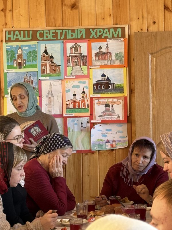 По окончании трапезы, в рамках регулярных встреч библейской группы, при Покровском храме прошло очередное занятие, посвящённое углублённому изучению текстов Нового Завета.