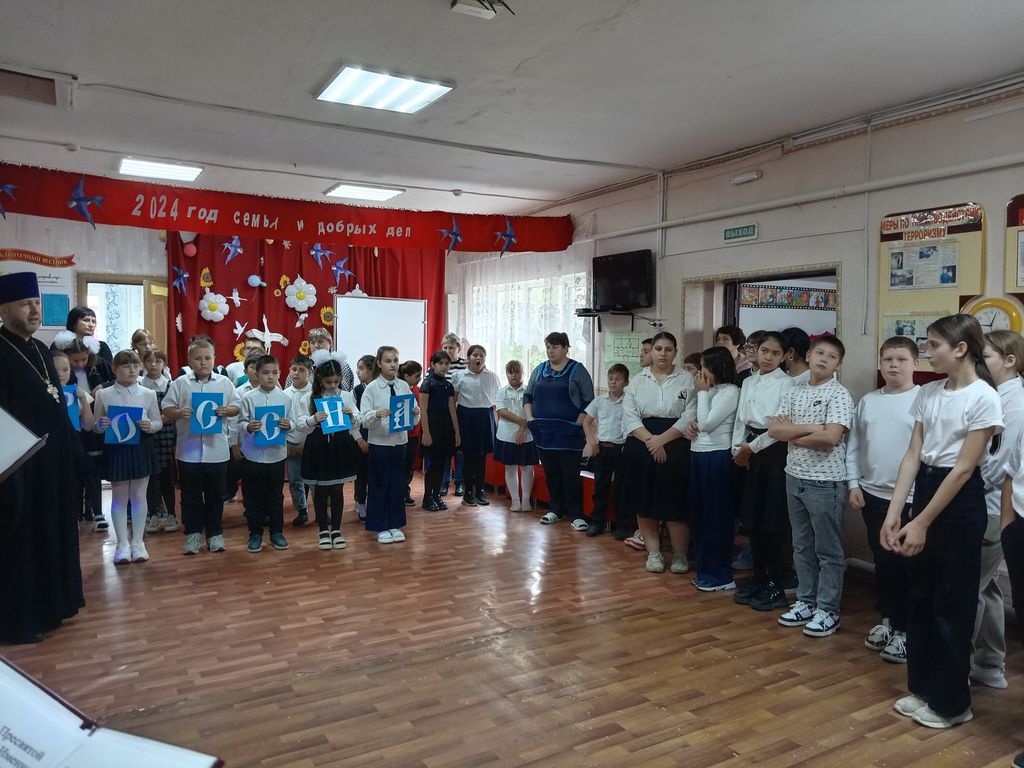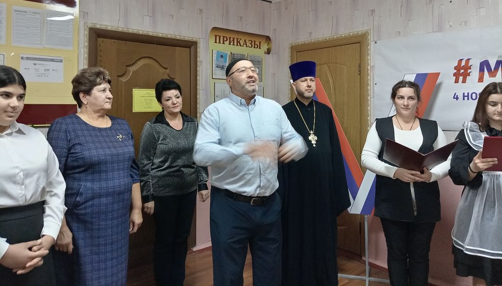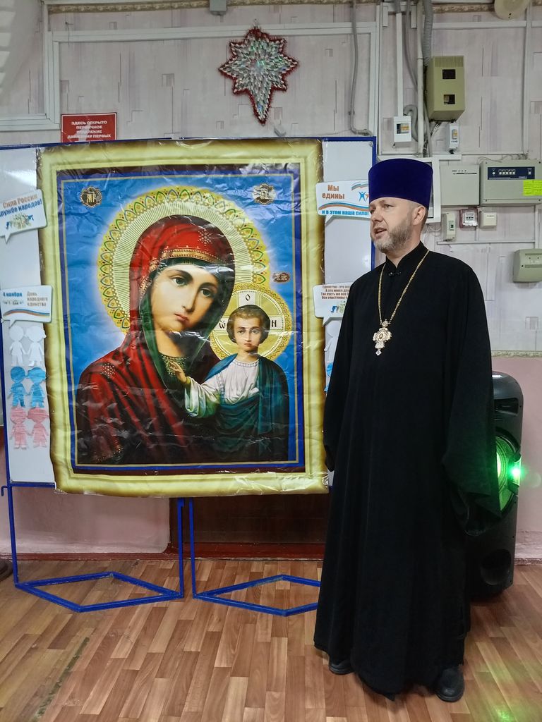 Священник раскрыл духовный и исторический смысл праздника, показал роль веры и единства для существования и развития государства и призвал изучать и сохранять духовные традиции российского народа в семье и школе.