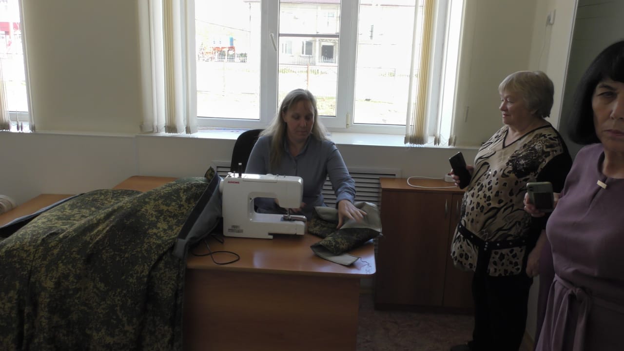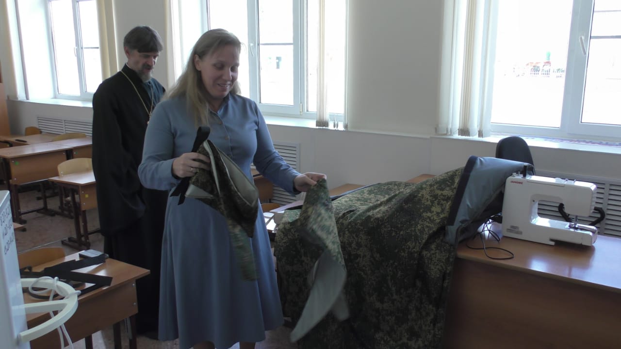 Добровольцы храма показали мастер-класс «Изготовление пончо-защиты от тепловизоров для военнослужащих СВО».