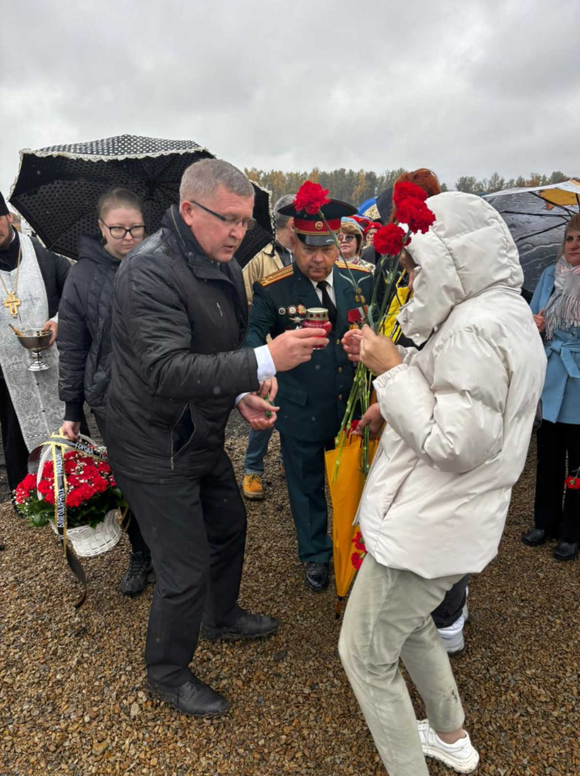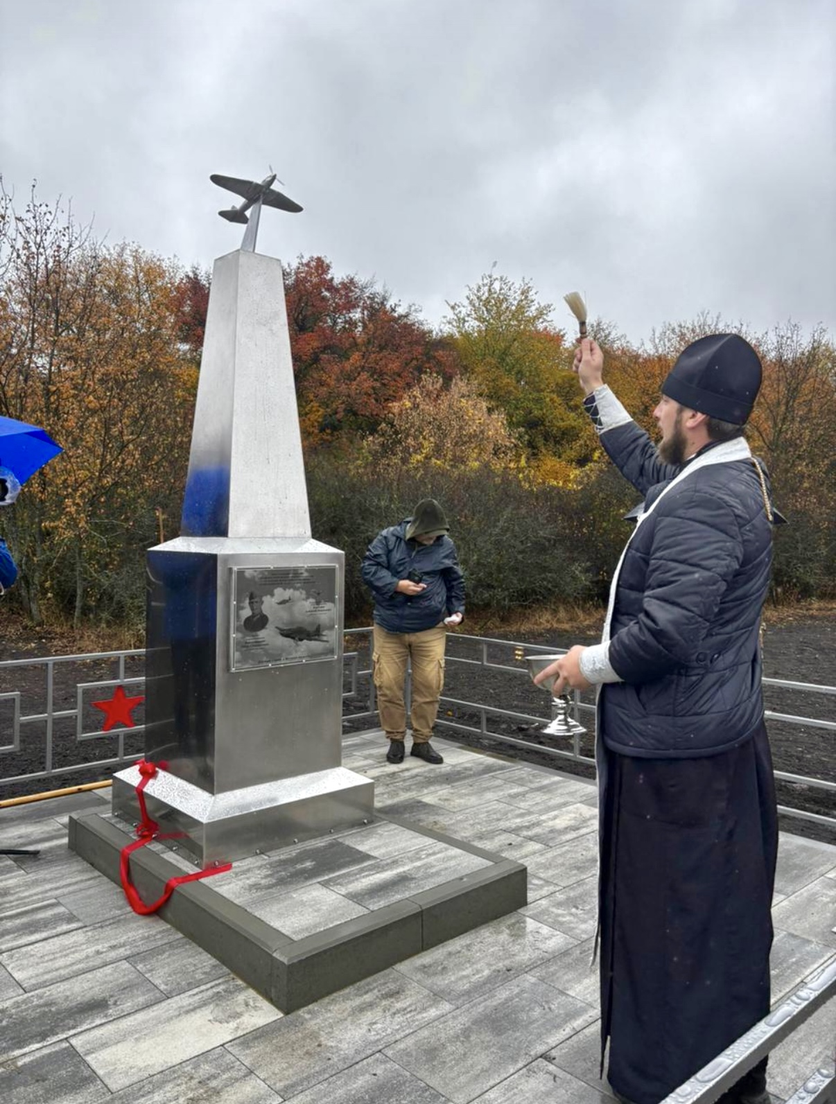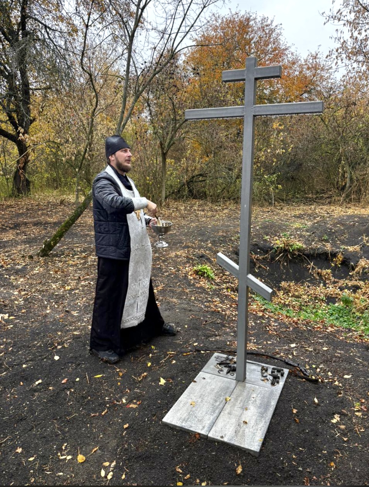 Настоятель храма Иоанна Предтечи ст. Боковской иерей Александр Левчик совершил чин освящения поклонного креста и памятного знака.После чего состоялось возложение цветов.