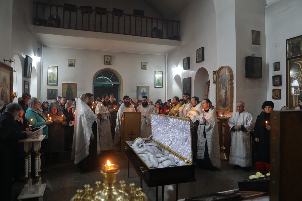 Накануне гроб с телом отца Владимира был установлен в центре Никольского храма. Священники Александровск-Грушевского благочиния поочередно читали над усопшим пастырем Святое Евангелие.
