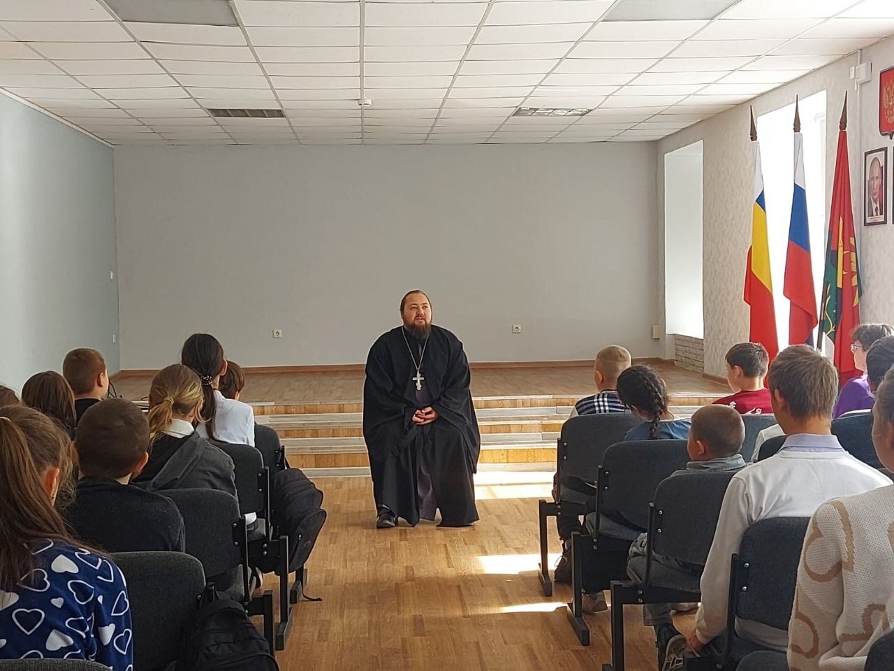 В день святого праздника Покрова Пресвятой Богородицы в ГКОУ РО Гуковской школе-интернате №12 состоялась особая встреча. Наших ребят посетил клирик храма великомученика и целителя Пантелеимона иерей Андрей. Его вдохновляющие слова подарили обучающимся новые знания и понимание важнейших ценностей человеческой жизни.