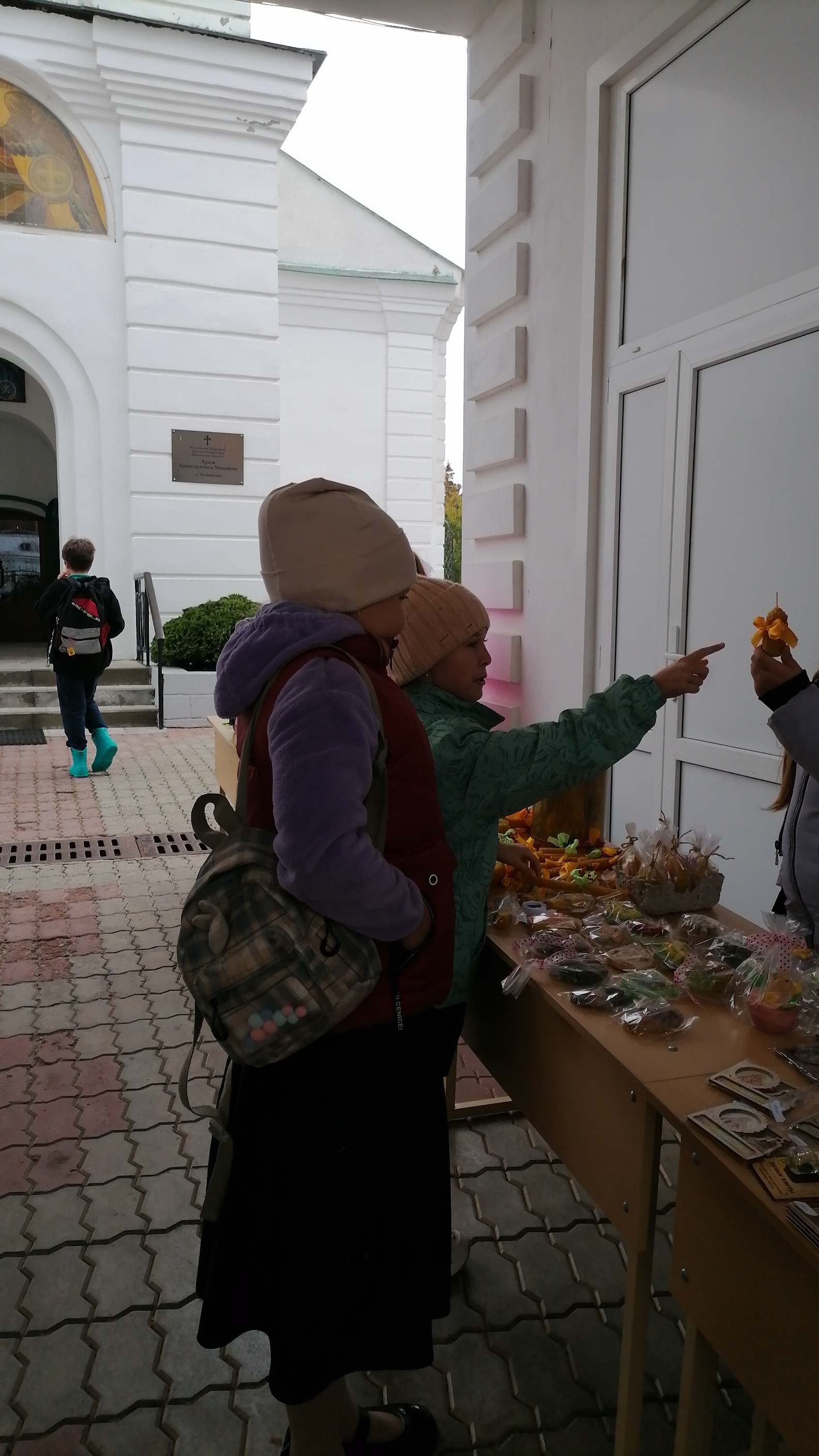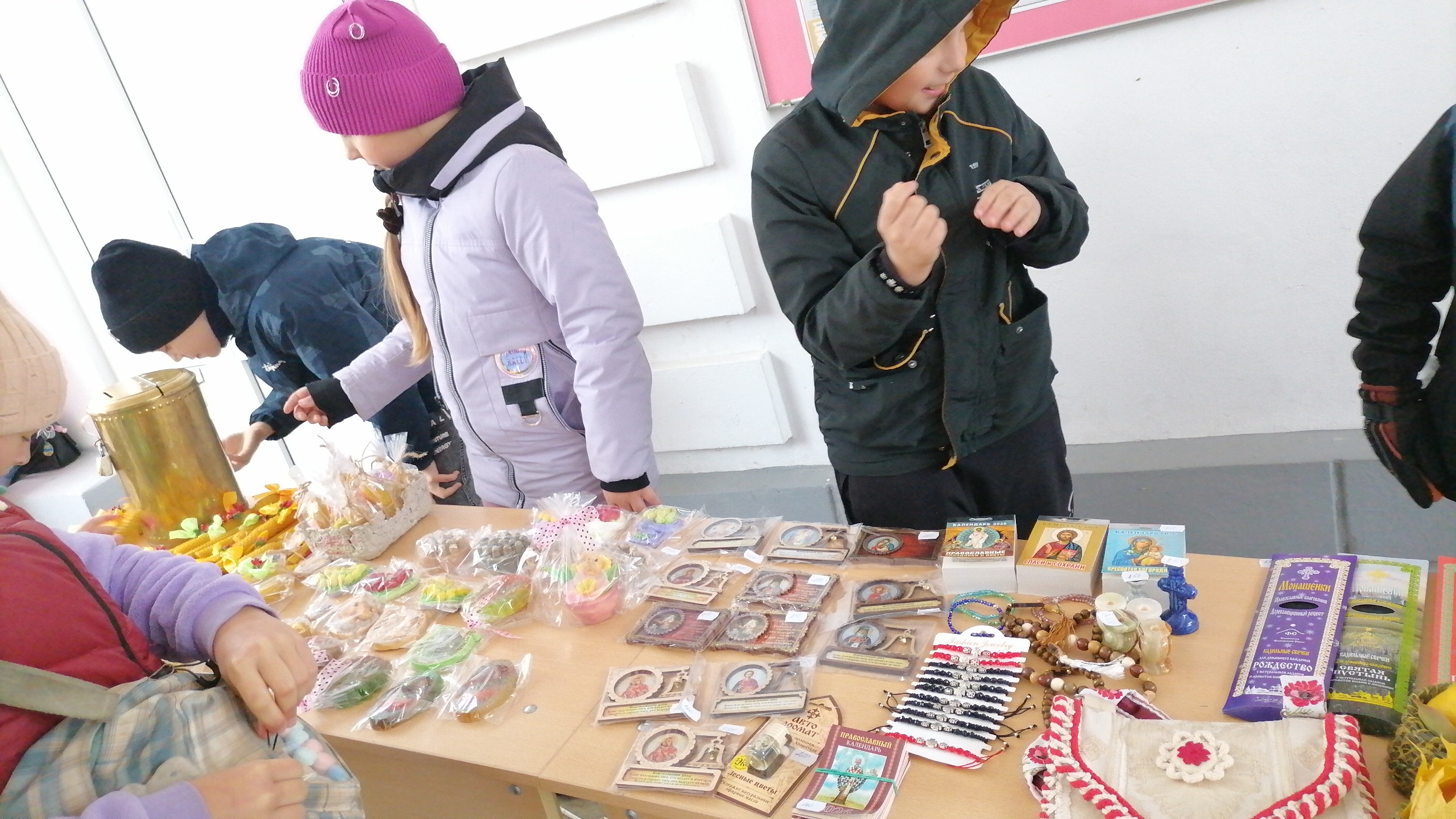 Воспитанники детской воскресной школы представили поделки, изготовленные своими руками, родители воспитанников подготовили различную выпечку: пирожные, вафельные трубочки, пироги и другие изделия. Торговля шла живо и бойко, каждый мог найти что-то по своему вкусу. Вырученные от ярмарки средства будут направлены на нужды воскресной школы.
