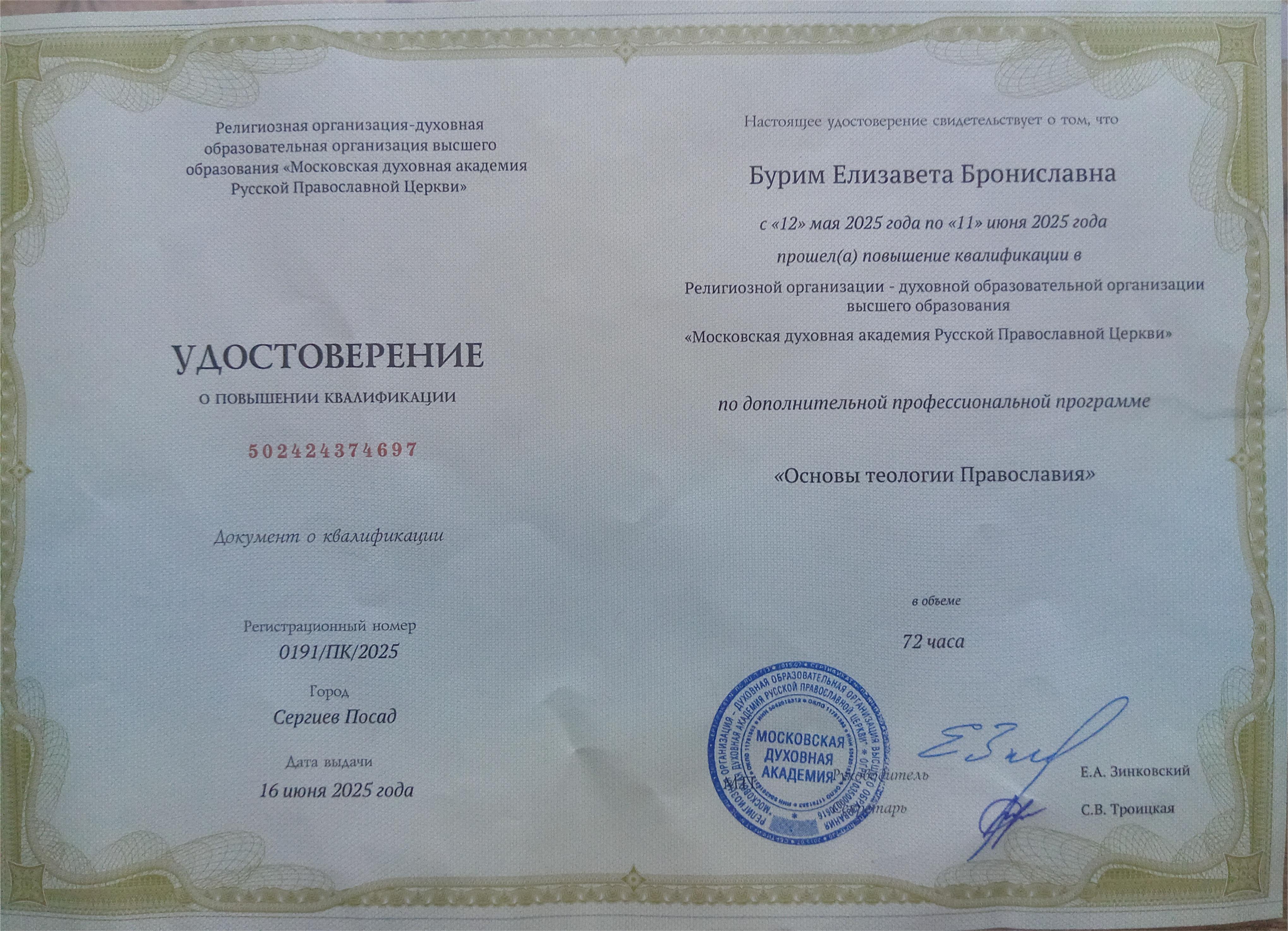 Приобретённые знания помогут Елизавете Бурим в дальнейшей работе по духовному просвещению жителей хутора и учащихся школы, а также для своего духовного развития.