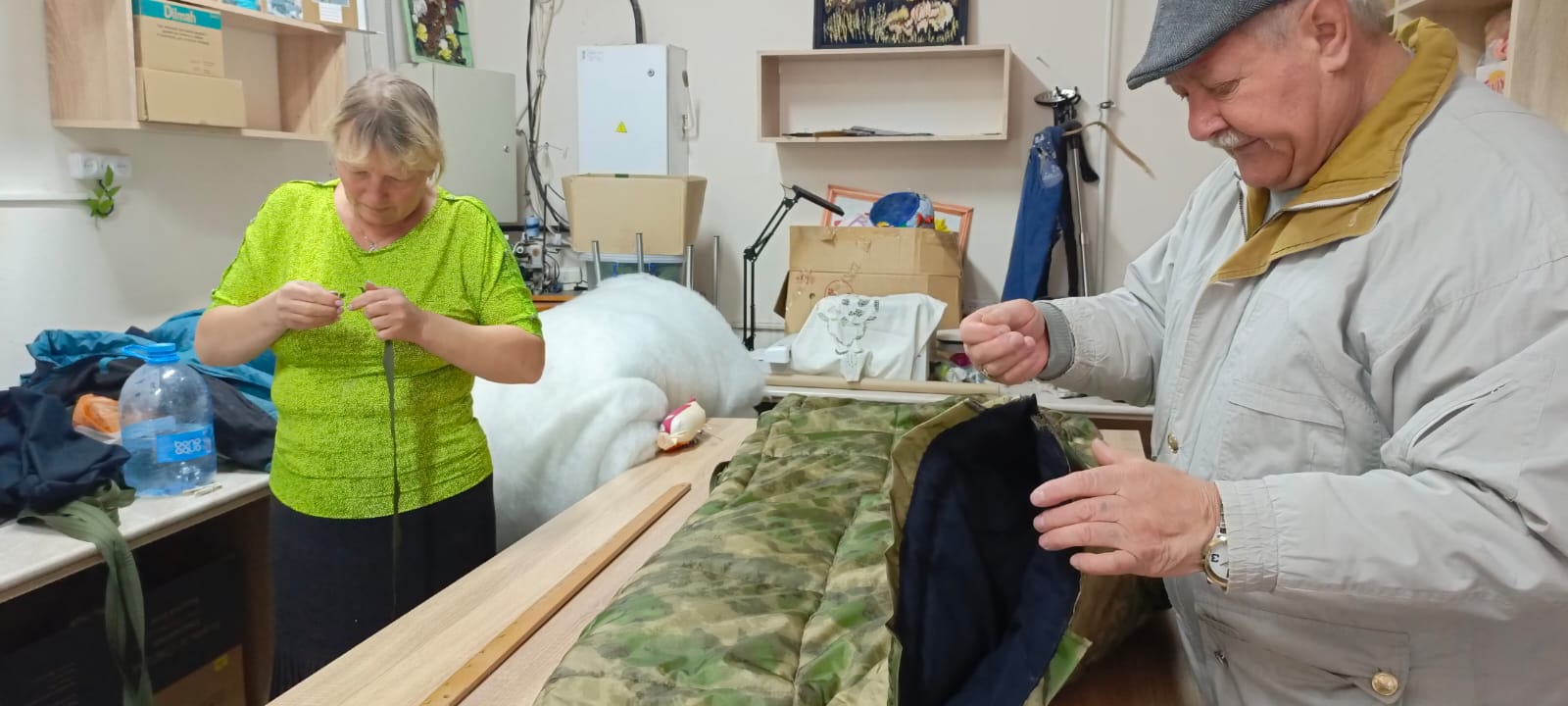 В рамках работы гуманитарного центра «От сердца к сердцу» оказывают помощь участникам СВО, участвуют в поздравлении их родных и близких, выполняют заявки на оказание помощи семьям бойцов, осуществляют помощь госпиталям в сборе медикаментов и изготовлении перевязочного материала. Сейчас идет пошив спальных мешков и антидроновых одеял. Мероприятие проходит в рамках клуба #МЫВМЕСТЕ и зарегистрировано на платформе ДОБРО.РУ РФ https://dobro.ru/event/11395543?utm_source=dobroru&utm_medium=organic&utm_campaign=pagerepost&utm_content=event
