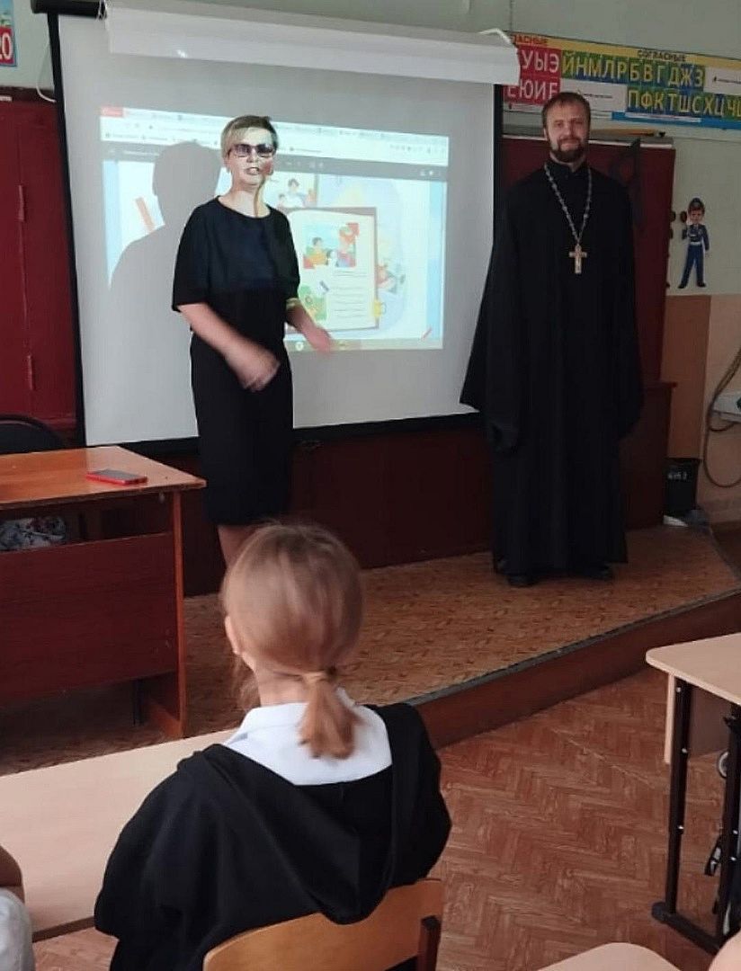 21 октября, в МБОУ «Лицей № 24» прошло занятие «Разговоры о важном». Тема занятия «Как создать крепкую семью. День отца. День матери». Советник директора по воспитанию Завгородняя И. Л. пригласила настоятеля прихода великомученика и целителя Пантелеимона иерея Леонида Зацепилина, который рассказал детям о семейных ценностях, о христианском понимании семьи и брака, особо подчеркнув, что главное в семье - это возможность послужить своему ближнему и раскрыть в себе дар жертвенности. В процессе общения ребята активно задавали вопросы. Священник подробно и в доступной форме отвечал на вопросы, волнующие детей.