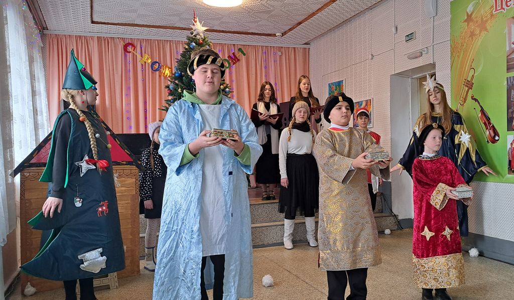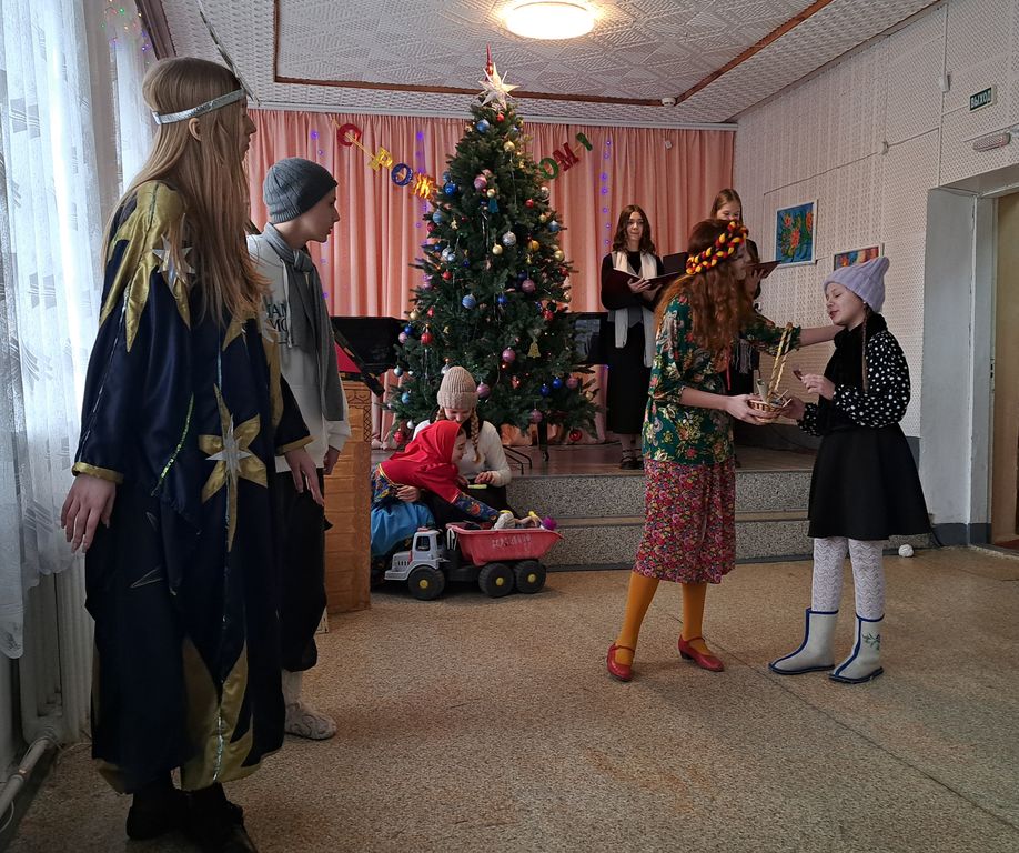Вместе с учениками школы в праздничном концерте приняли участие воспитанники Центра. Дети выступили с театральными миниатюрами, чтением стихотворений и пением колядок и рождественских песнопений. Юных артистов тепло приветствовали собравшиеся – родители, друзья и подруги. После концерта все ученики школы получили подарки. Закончилось торжество праздничной трапезой и чаепитием в помещении приходской воскресной школы.