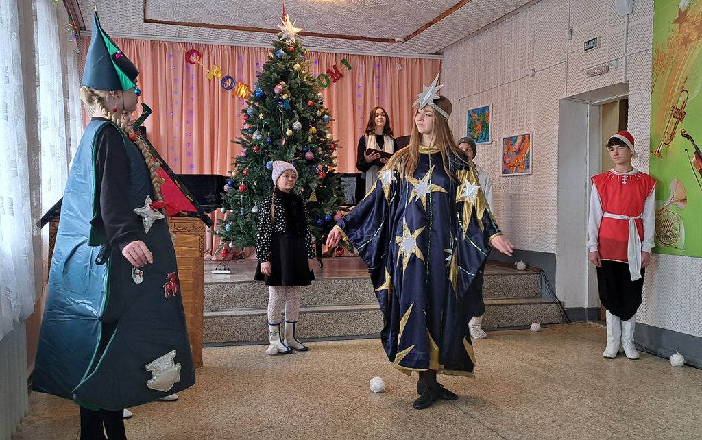 Ученики и преподаватели Пантелеимоновского храма пос. Майский провели праздничное мероприятие, посвященное светлому празднику Рождества Христова. Утренник прошел в гостеприимных стенах Центра казачьих искусств (музыкальной школе) поселка.