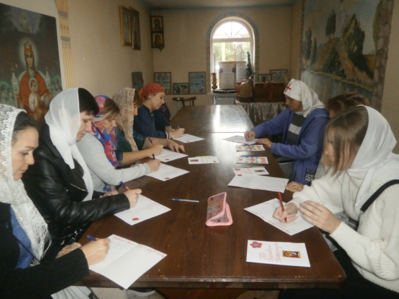 Учащиеся и преподаватели Шаронова Н.М., Меняйлова М.Б., Давидова Н.Г. на уроках творчества изготовили сувениры и 12 октября провели акцию-ярмарку по сбору пожертвований для жителей Донбасса, пострадавших и оставшихся без кроваот от действий ВСУ. Кроме того ребята сделали открытки для воинов СВО и члены молодежного отдела, сестры милосердия написали солдатам поздравления с праздником Покрова Пресвятой Богородицы. Так воспитанники школы и взрослые прихожане приняли участие в доброделании и заботе о ближнем.