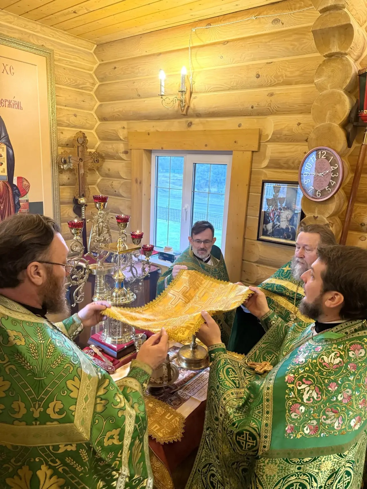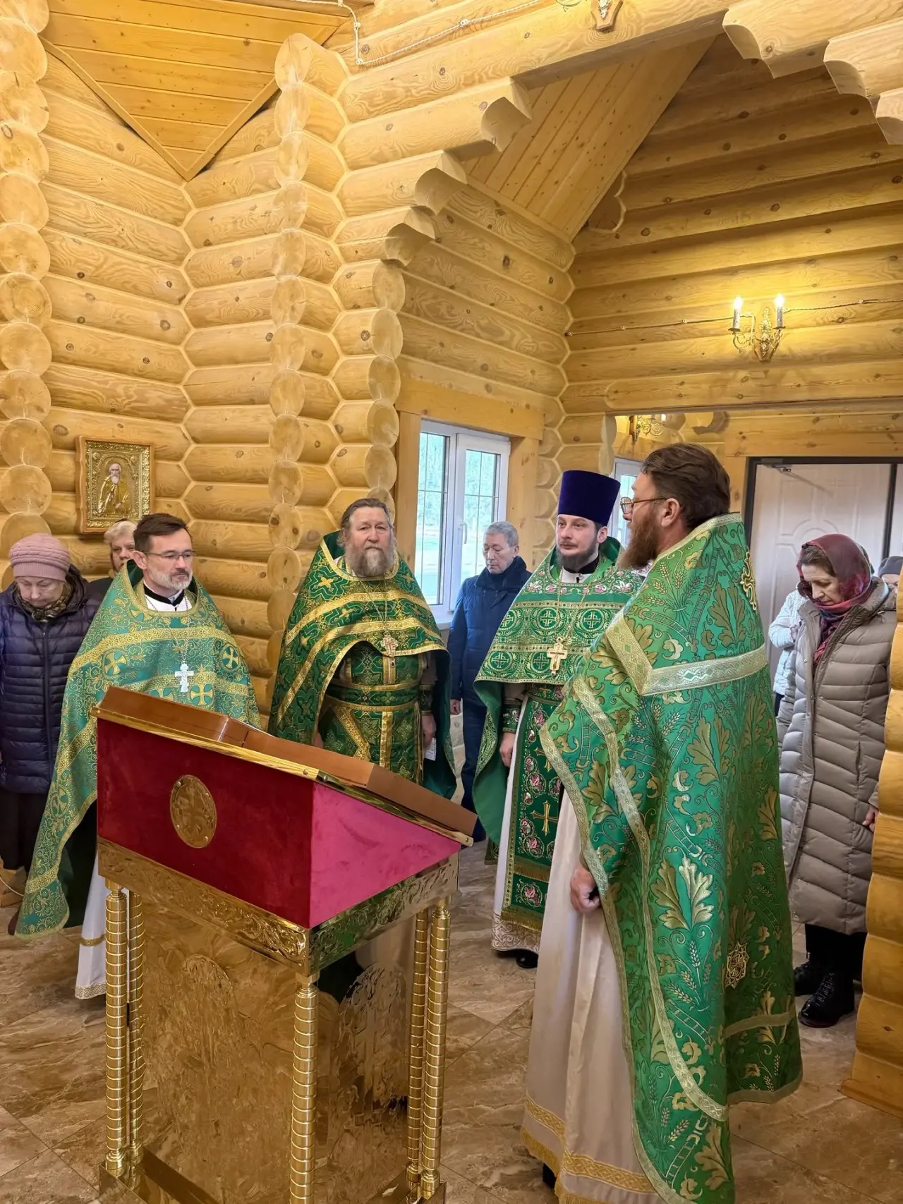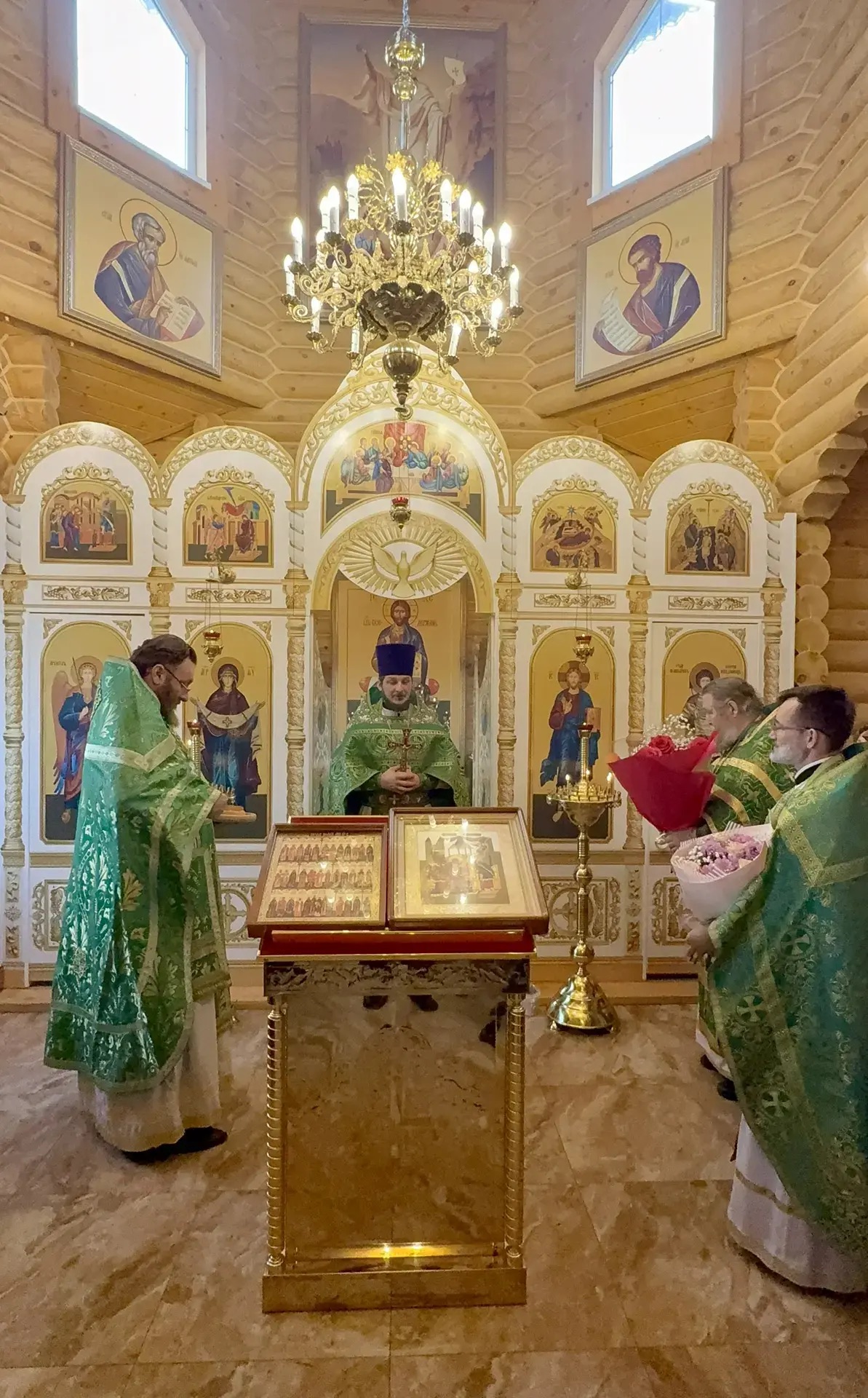 Божественную литургию совершили благочинный приходов Чернышевского округа иерей Александр Левчик, настоятель храма протоиерей Александр Бралгин, настоятель храма Покрова Пресвятой Богородицы иерей Виталий Трошин и настоятель храма Покрова Пресвятой Богородицы ст. Каргинская иерей Борис Юров.