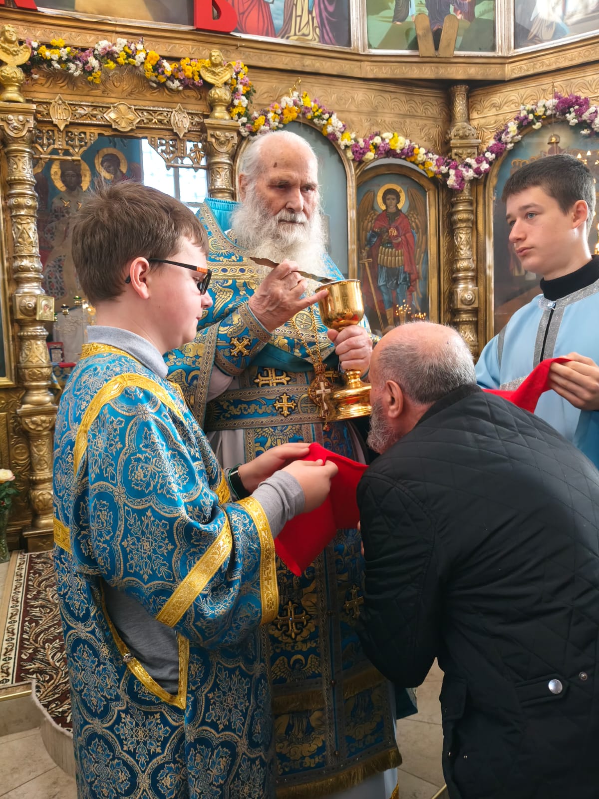 Божественную литургию возглавил митрофорный протоиерей Александр Минин, вместе с которым молились благочинный округа иерей Александр Тимошенко, клирик храма иерей Димитрий Галицкий. По завершении Литургии было совершено водоосвящение и, под праздничный колокольный звон, крестный ход.