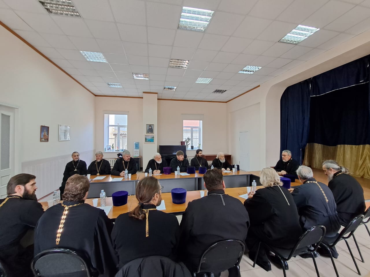 На собрании были рассмотрены вопросы, которые обсуждались на епархиальном совете, а также вопросы внутренней жизни благочиний.