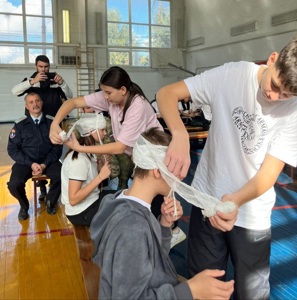 В спортивной школе Багаевского района прошёл мастер-класс по ГО «Сохрани жизнь себе и тем, кто с тобою рядом». Вместе с тренерами занятие с ребятами провели настоятель храма Апостола и Евангелиста Иоанна Богослова иерей Андрей Перьков, ветеран Чеченский войны, участники и ветераны СВО, казаки.