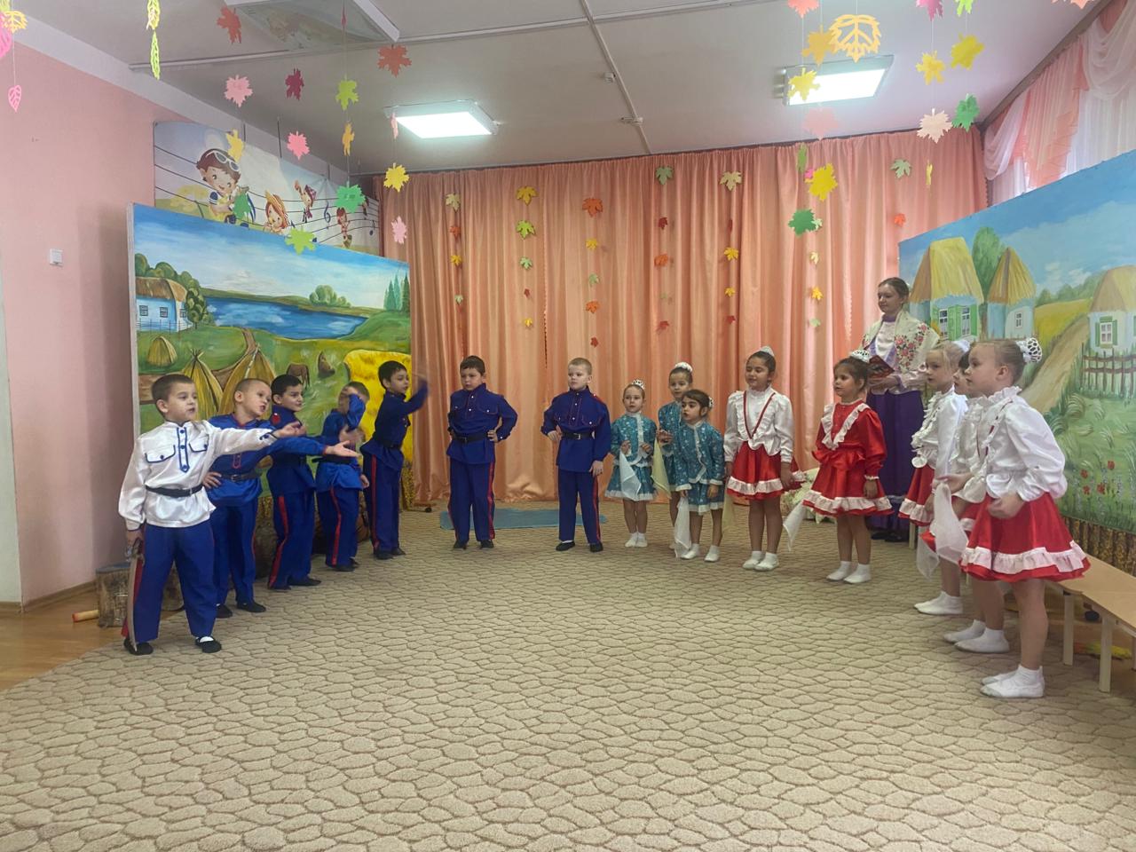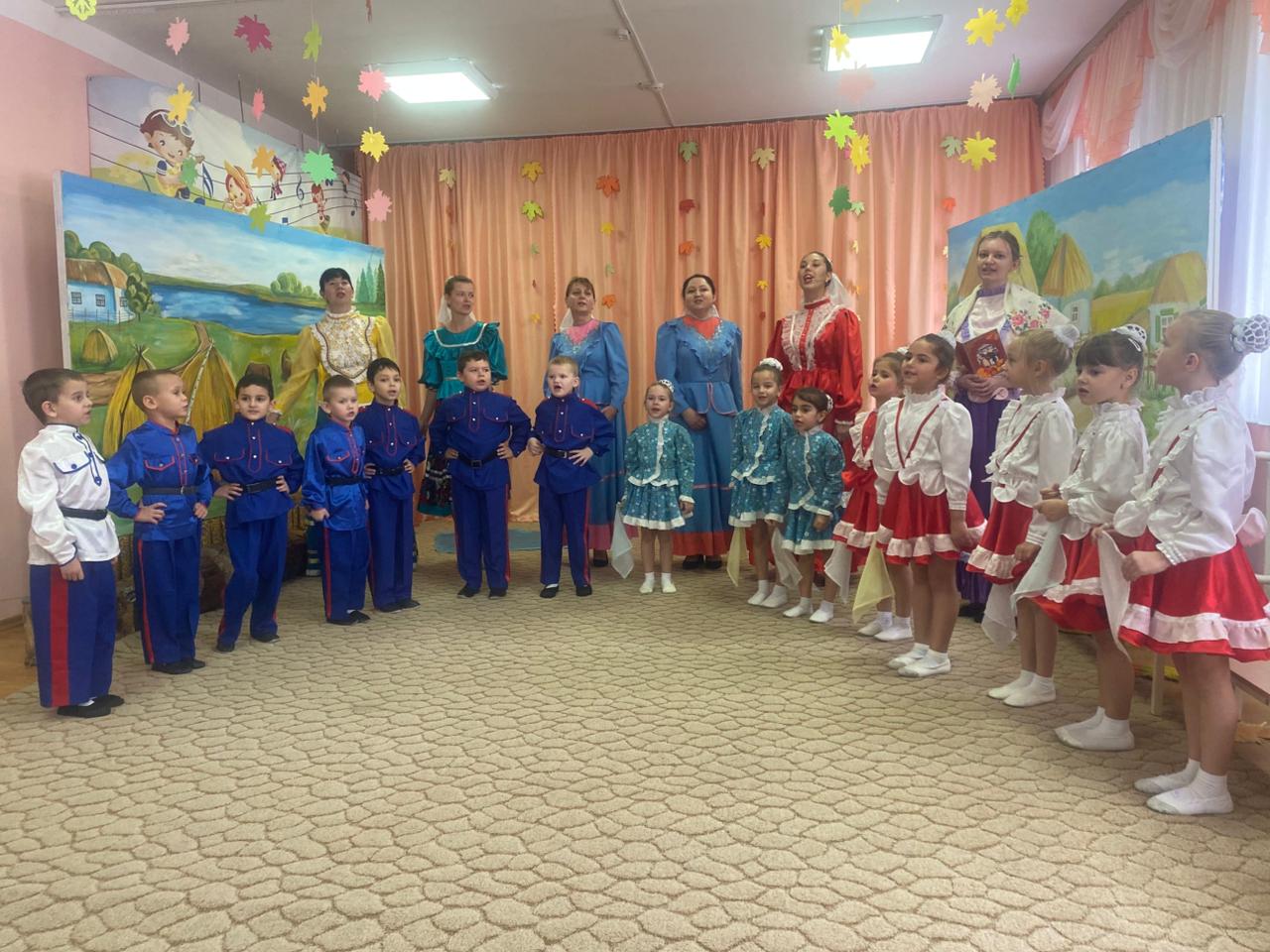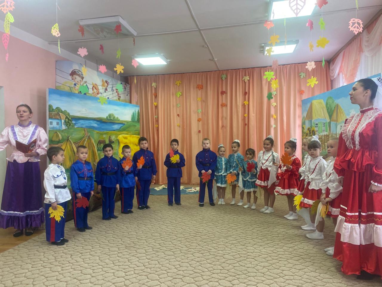 В музыкальном зале прозвучали песни и стихи о празднике Покров. Казачата водили танцевали и играли в различные игры.