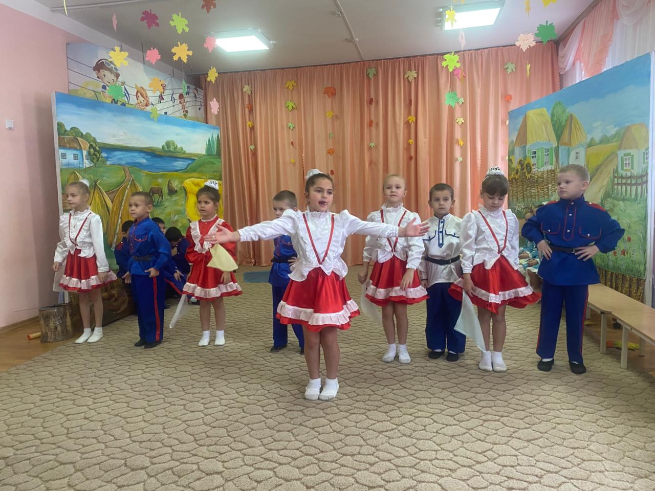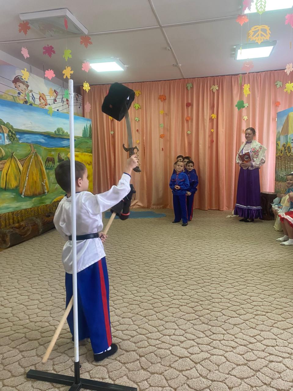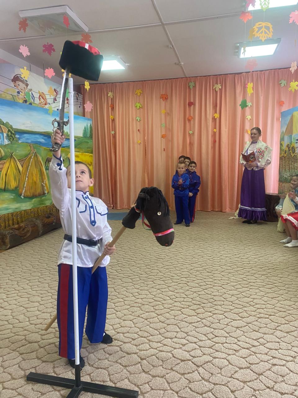 В музыкальном зале прозвучали песни и стихи о празднике Покров. Казачата водили танцевали и играли в различные игры.