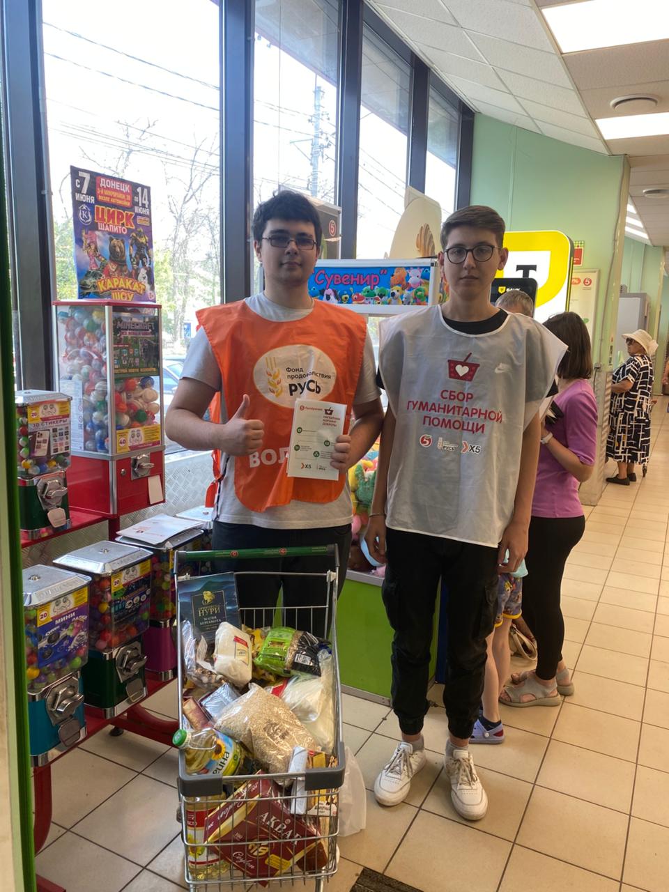 4-5 июля, во время летних каникул, студенты-волонтёры отряда "Доброхоты", совместно с куратором-преподавателем, старшей сестрой милосердия при Державном храме города Донецка Ольгой Николаевной Бреусовой провели внеочередной марафон "Корзина доброты" в магазинах "Пятёрочка" на территории города Донецка.