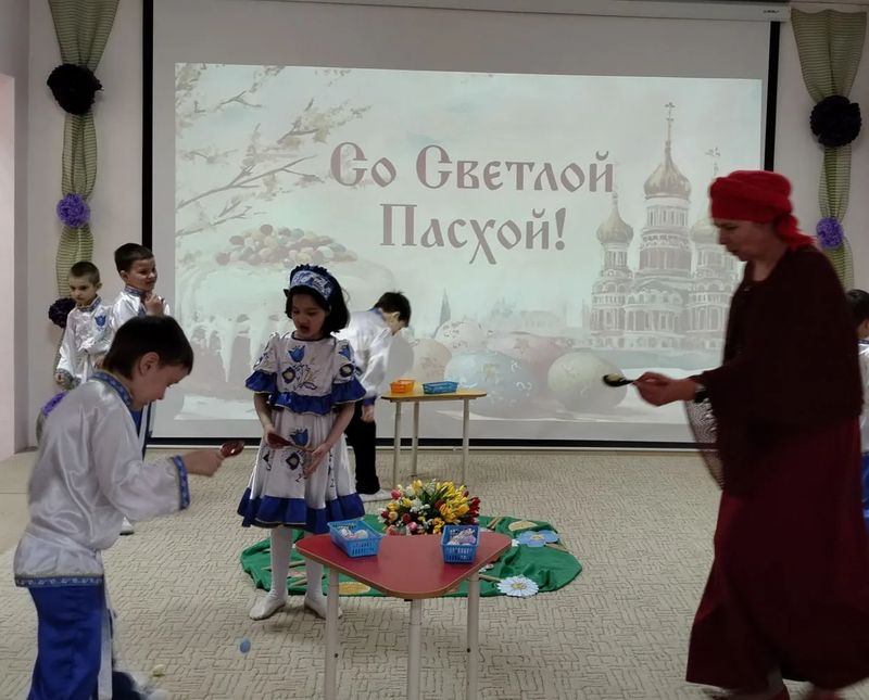 Его провела помощница настоятеля Инна Викторовна Саханина. Дети танцевали, играли на музыкальных инструментах, расписывали пасхальные яйца и весело играли. Инна Викторовна рассказала ребятам о празднике и православных традициях, связанных с ним. Дети узнали, что Пасхе предшествует Великий пост — особенное время, когда верующие воздерживаются от скоромной пищи, стараются не посещать развлекательные мероприятия и совершать добрые дела.