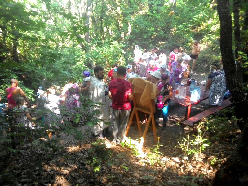 По окончании Божественной литургии настоятель протоиерей Игорь Жевердан и прихожане с Почаевской иконой прошли крестным ходом к источнику в х. Чегиринка, где был совершен водосвятный молебен.